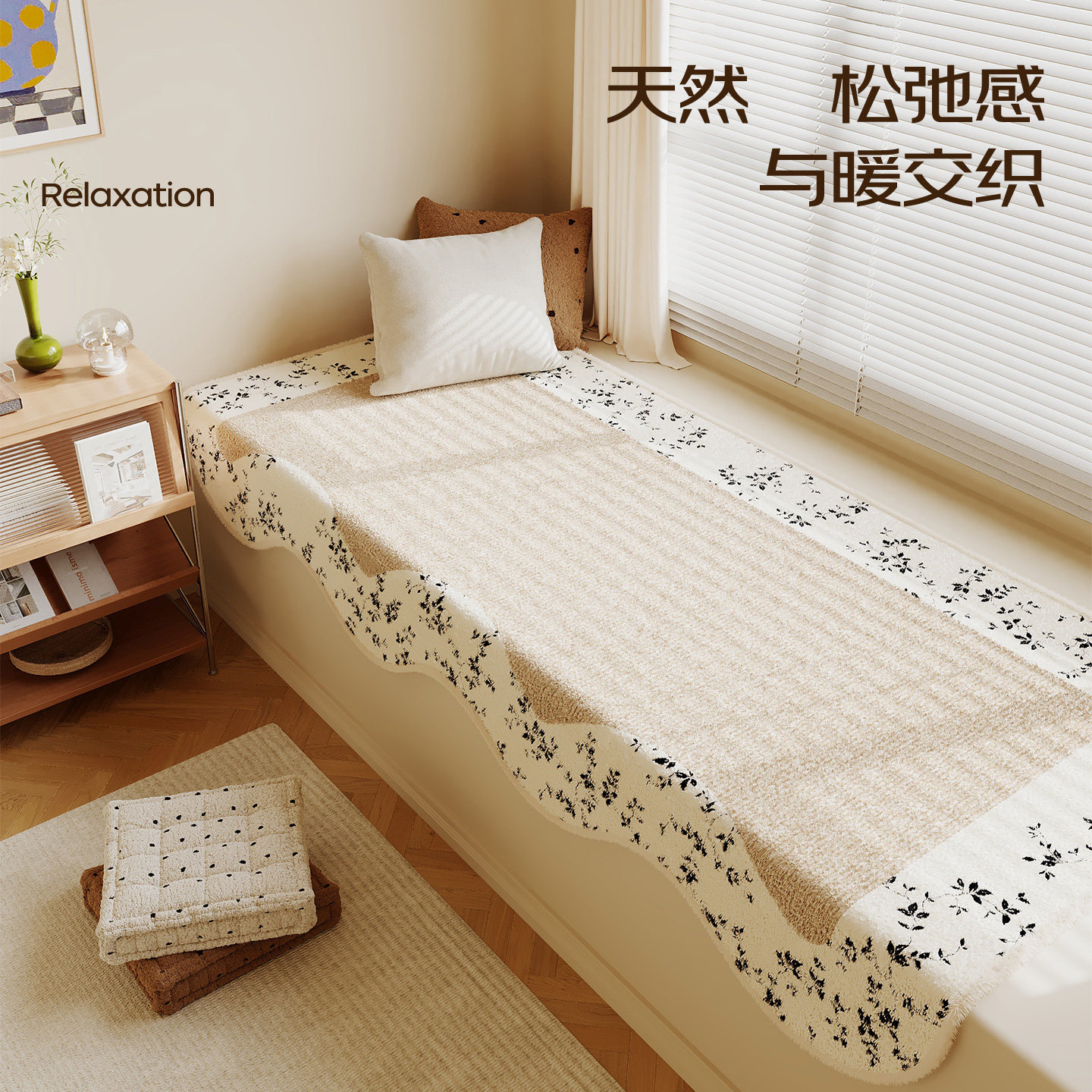 淘蔓越家 ins奶油色毛绒秋冬卧室飘窗垫防滑窗台垫阳台榻榻米坐垫