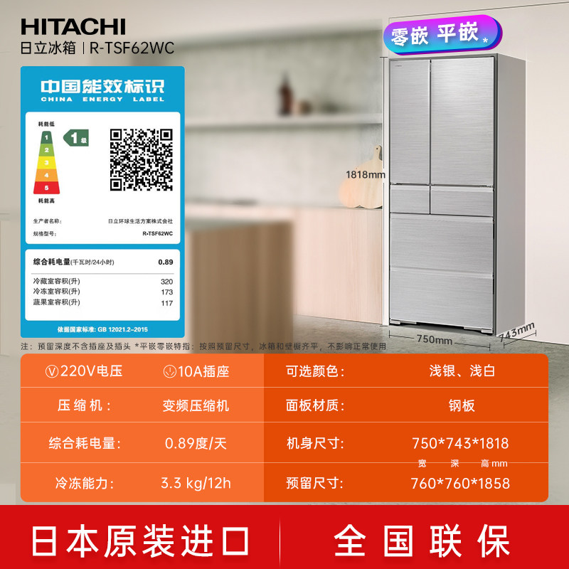 天猫日立冰箱新款610L日本原装进口嵌入式多门家用大容量制冰冷冻冰箱