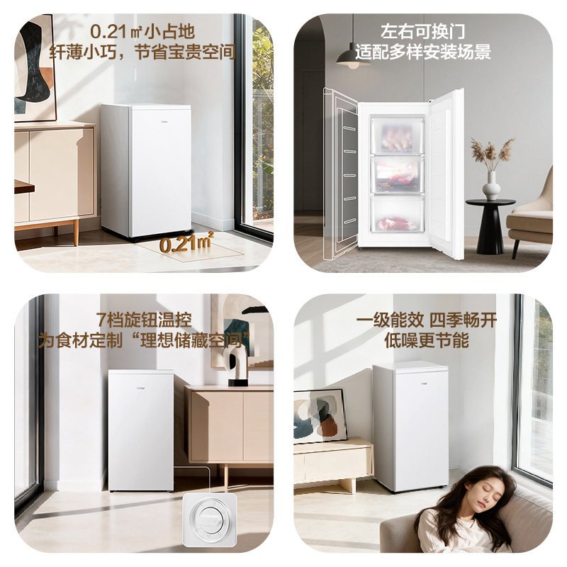 天海尔136升冷柜家用抽屉一级能效立式风冷无霜冷冻柜母乳小冰箱