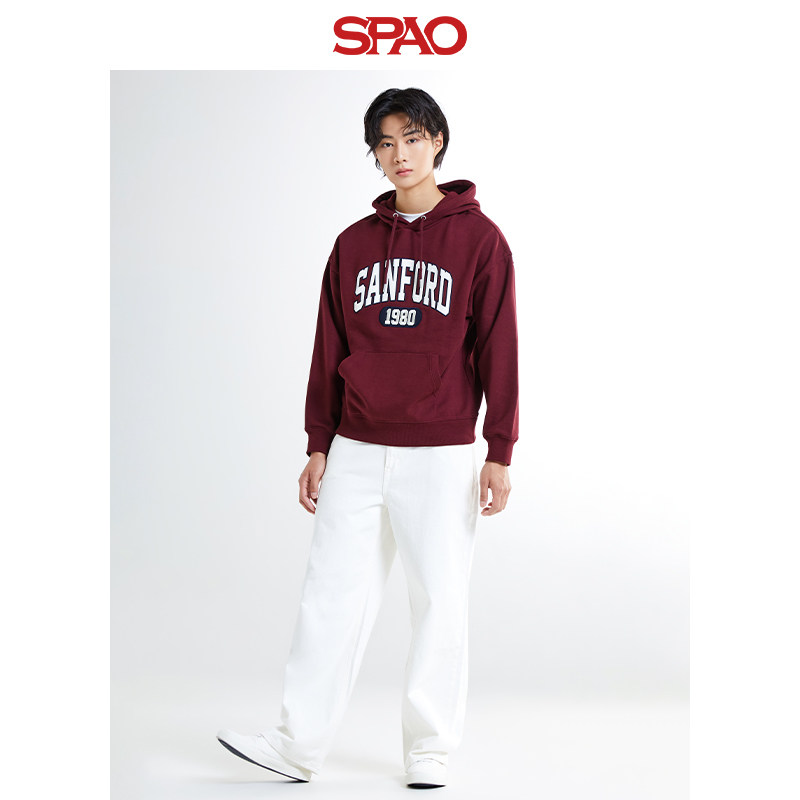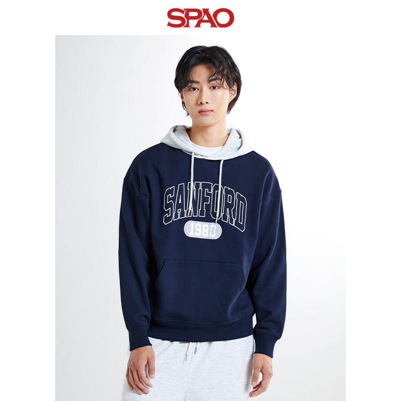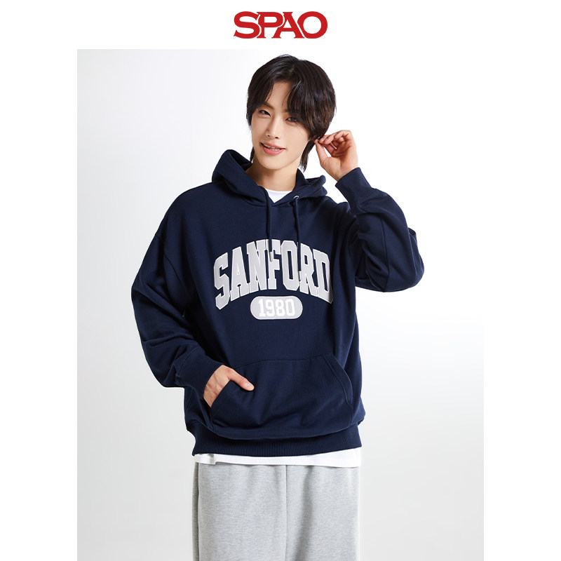 天猫SPAO韩国同款秋冬男士时尚潮流休闲字母印花通勤连帽套头卫衣