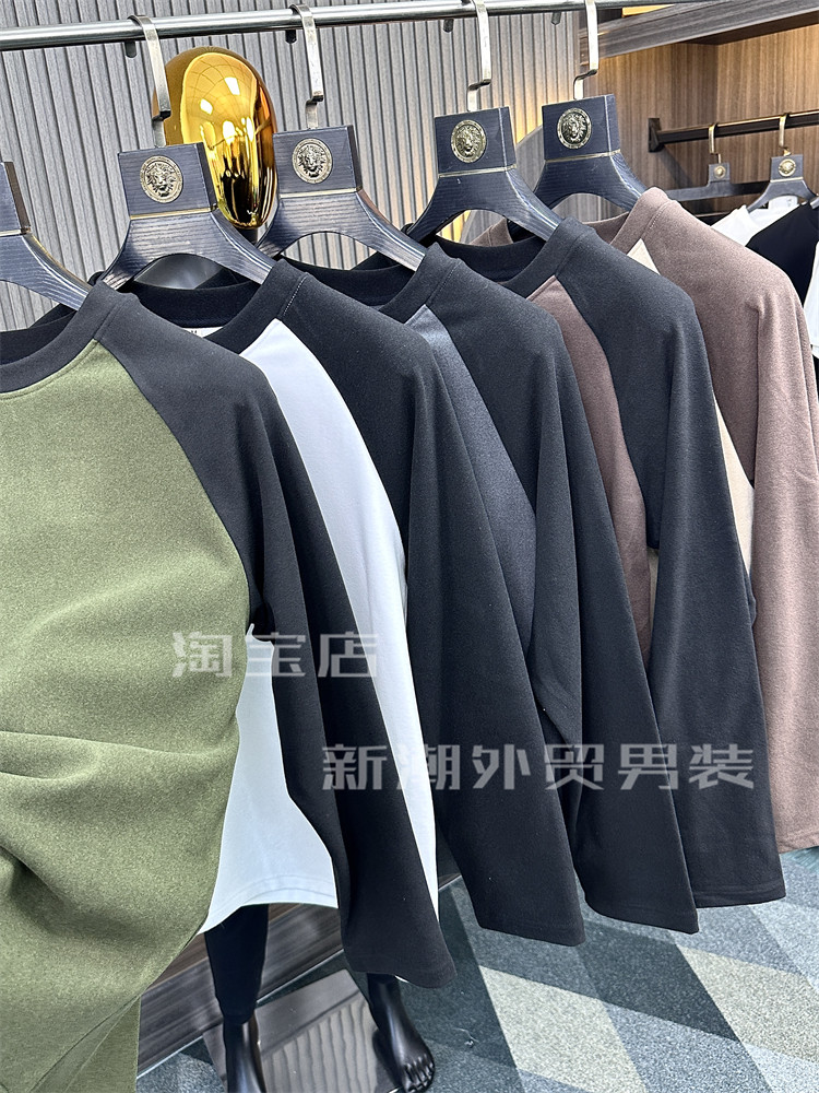 淘宝插肩袖~AB德绒自发热!柜400+!秋冬男士保暖圆领打底衫卫衣T恤潮