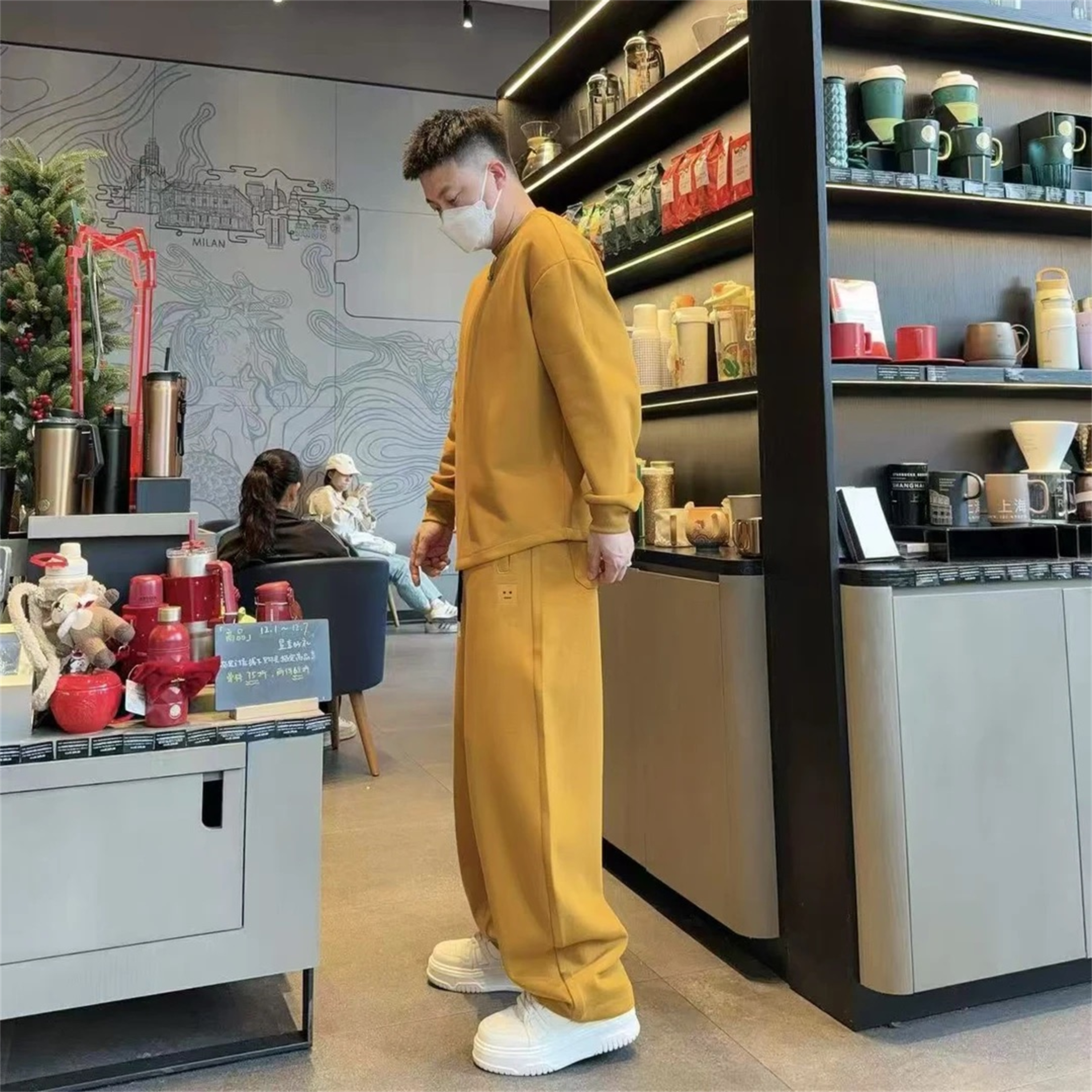 天回力加绒套装冬季男款保暖衣服裤子时尚帅气穿搭一整套学生卫衣男