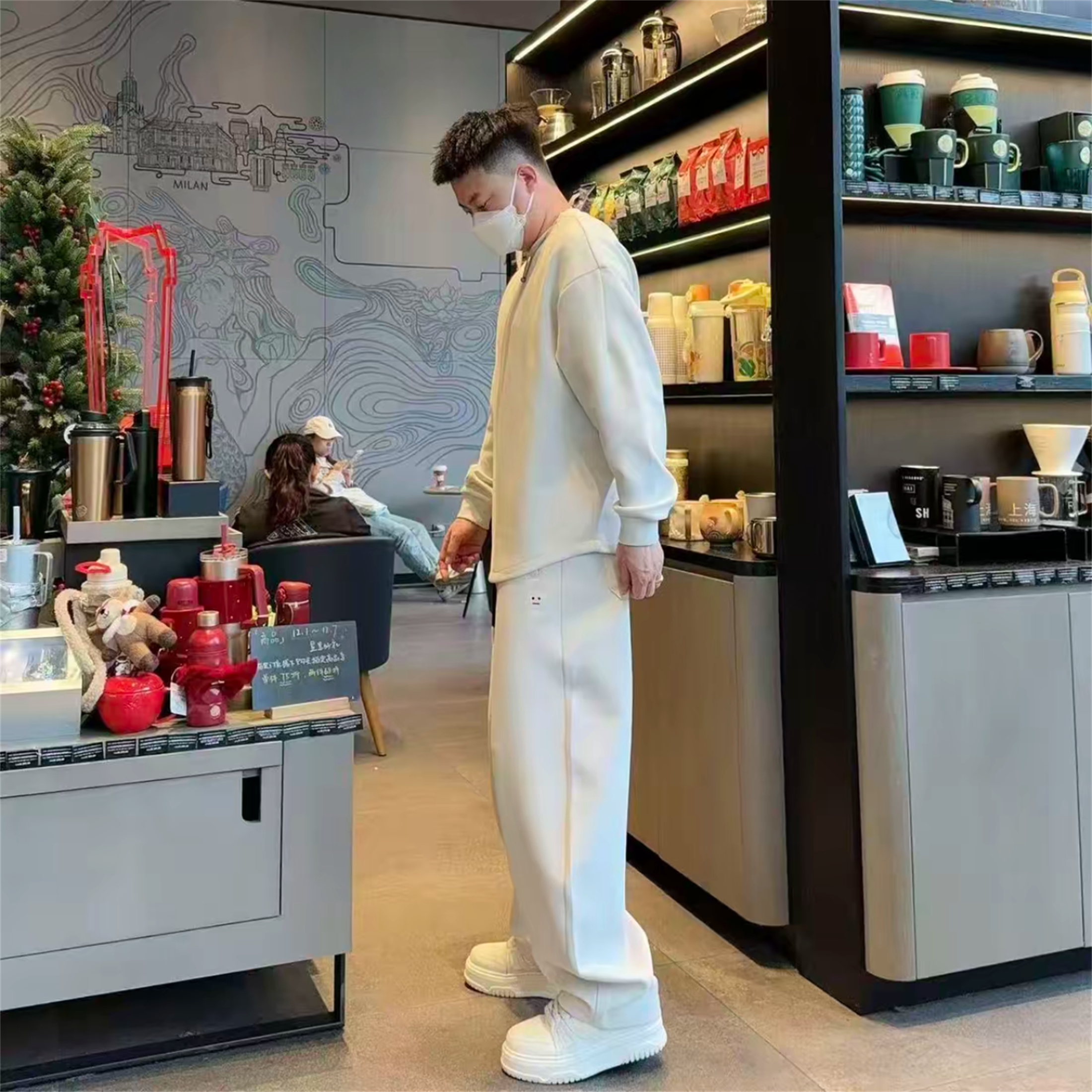 淘WASSUP Line潮牌连帽卫衣套装男款秋冬季宽松加厚加绒运动两件套