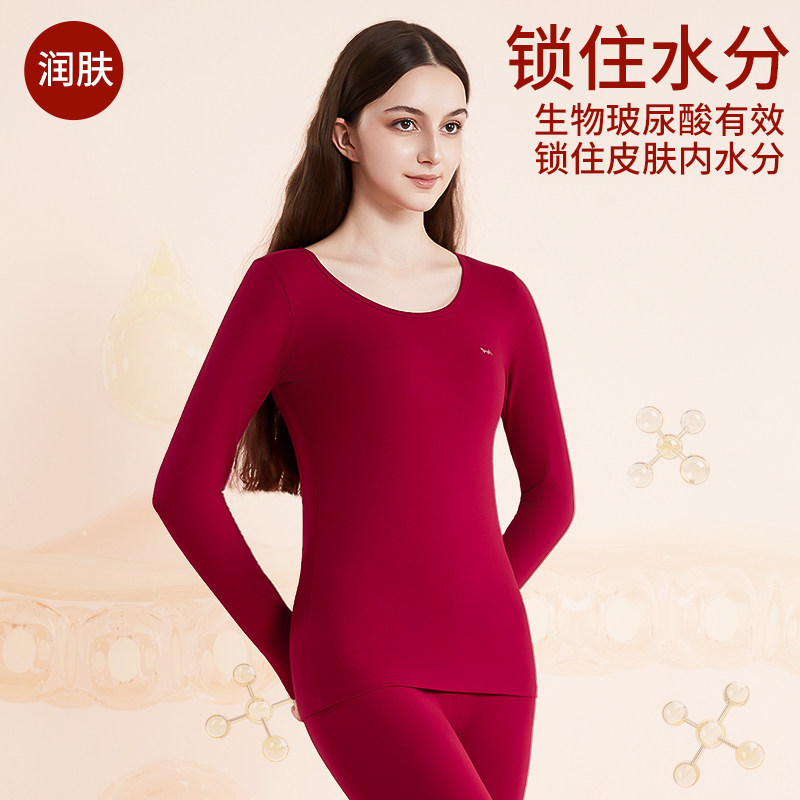 天雅鹿肌底衣保暖衣女红色发热打底蕾丝内搭本命年秋衣秋裤新年新婚