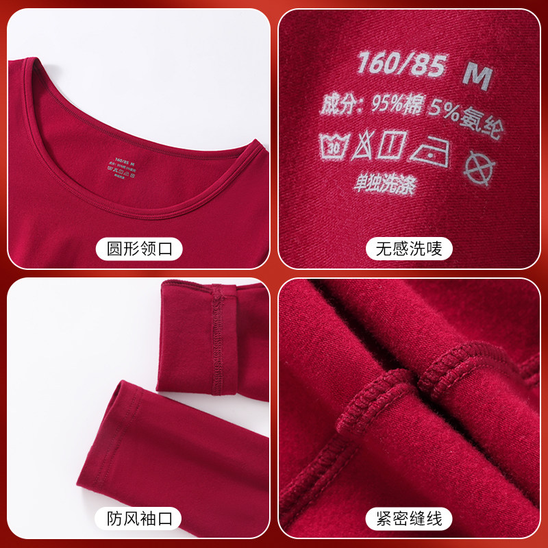 雅鹿爸爸妈妈本命年保暖内衣套装纯棉大红色秋衣秋裤2026属马冬季