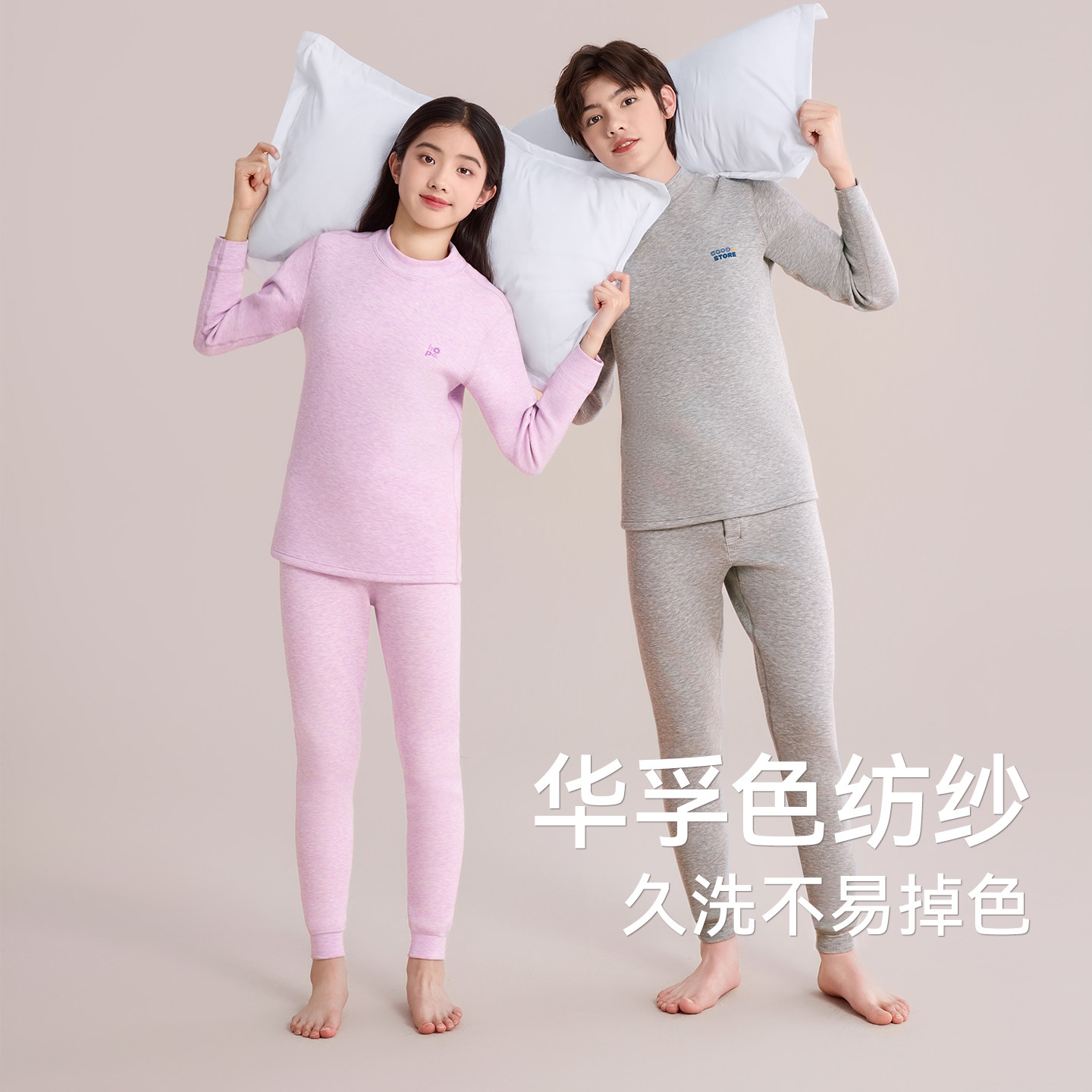 天猫红豆青少年保暖内衣加绒加厚色纺秋衣秋裤初中高中生打底冬季套装