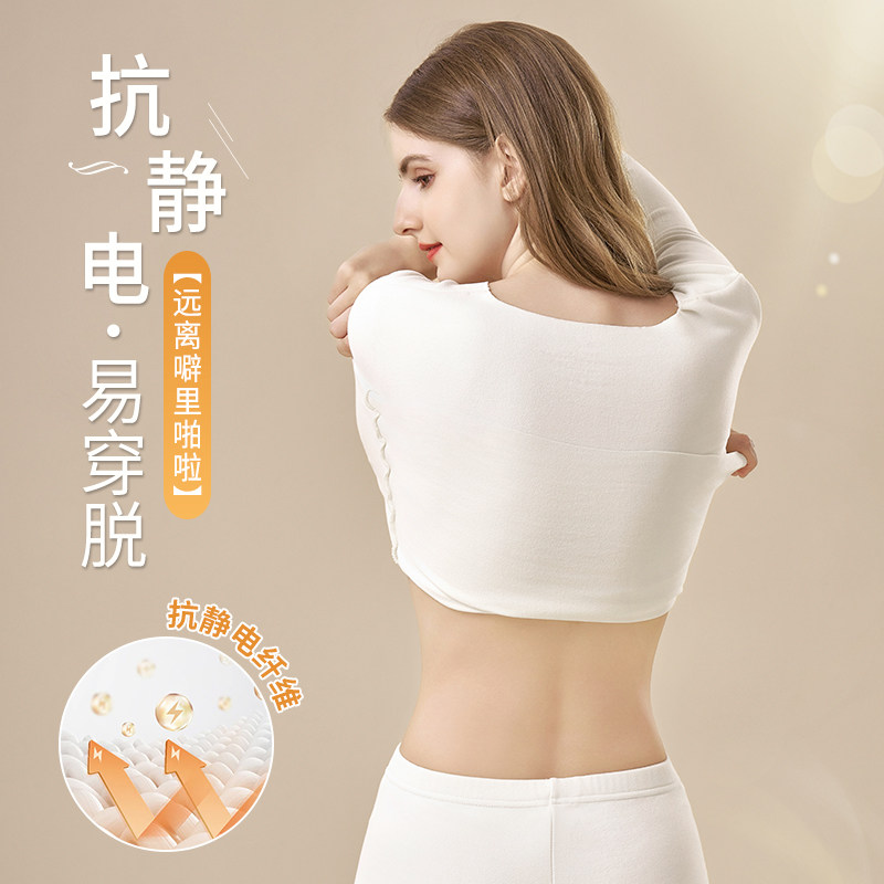 羊毛蚕丝无痕发热保暖内衣女秋冬季加绒加厚秋衣秋裤套装内穿打底