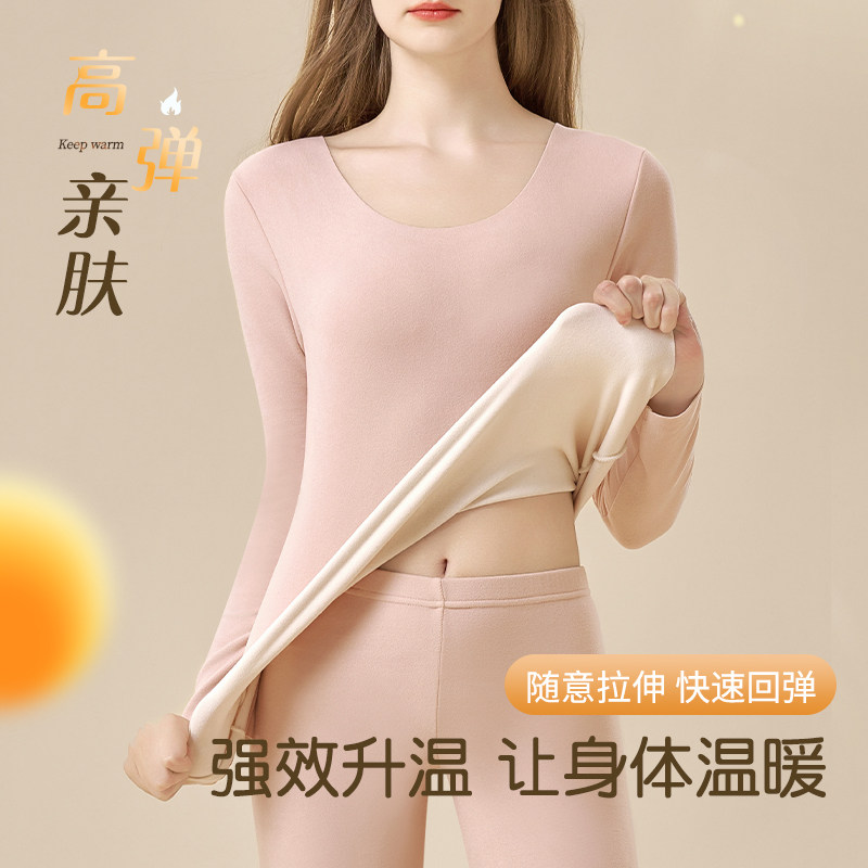 天猫无痕保暖内衣女士冬季加绒加厚自发热修身打底衫秋衣秋裤内搭套装