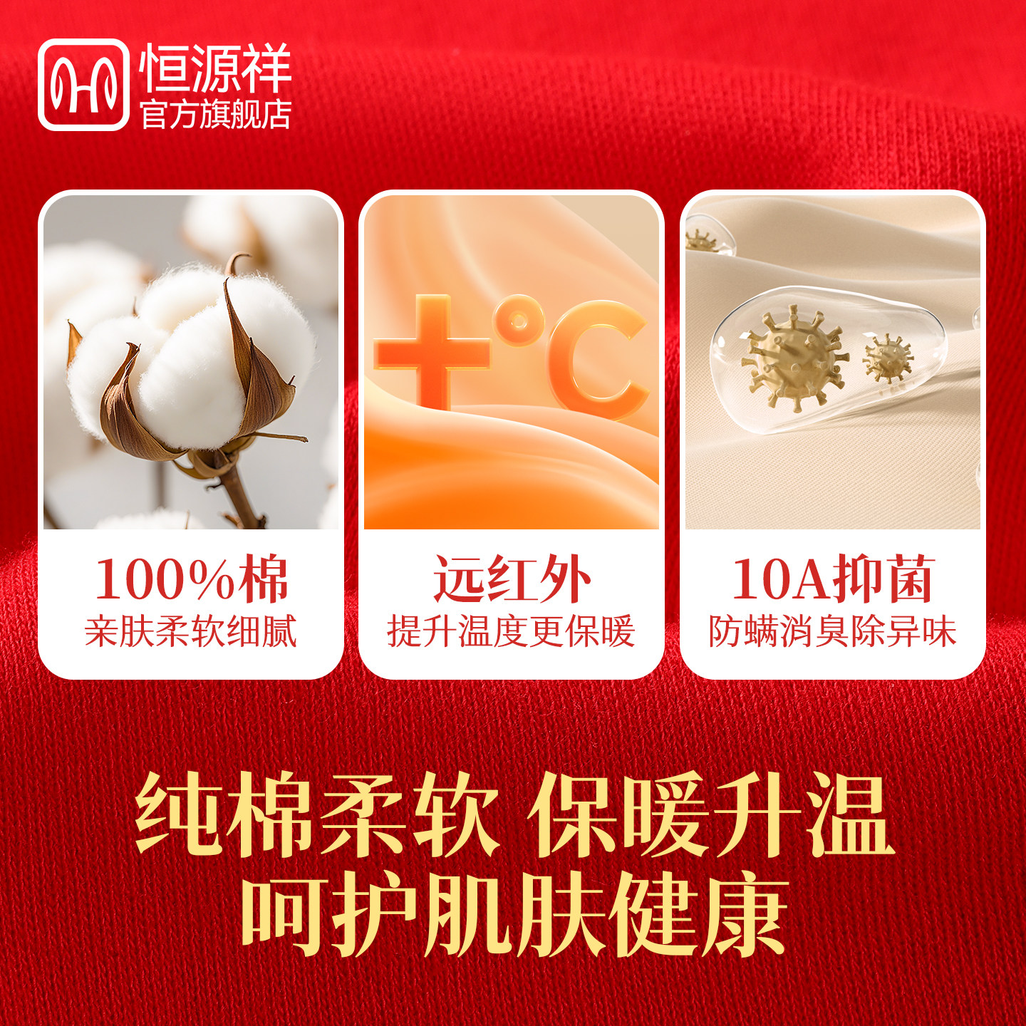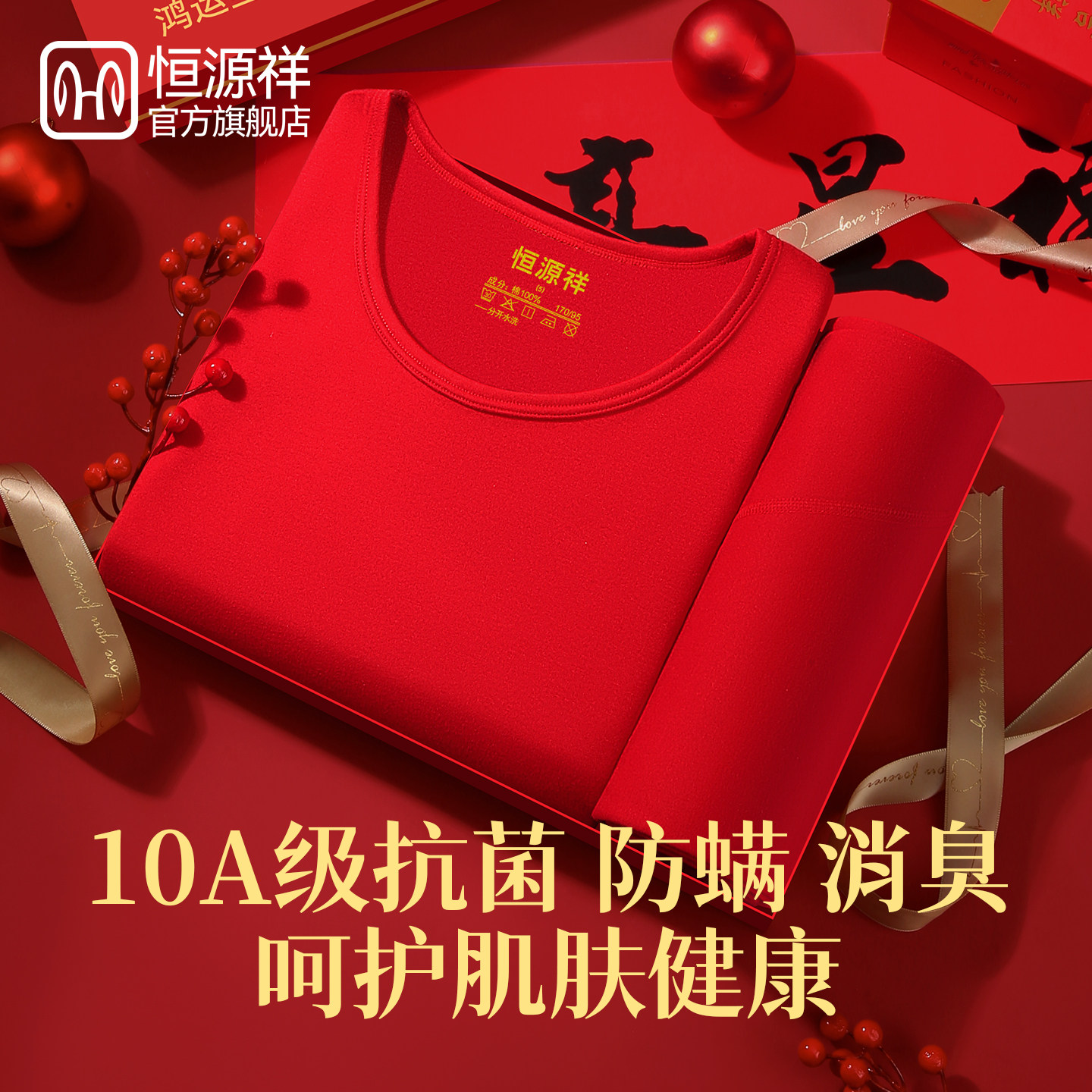 天猫恒源祥本命年男士秋衣秋裤全棉纯棉毛衫保暖内衣套装大红色女发热