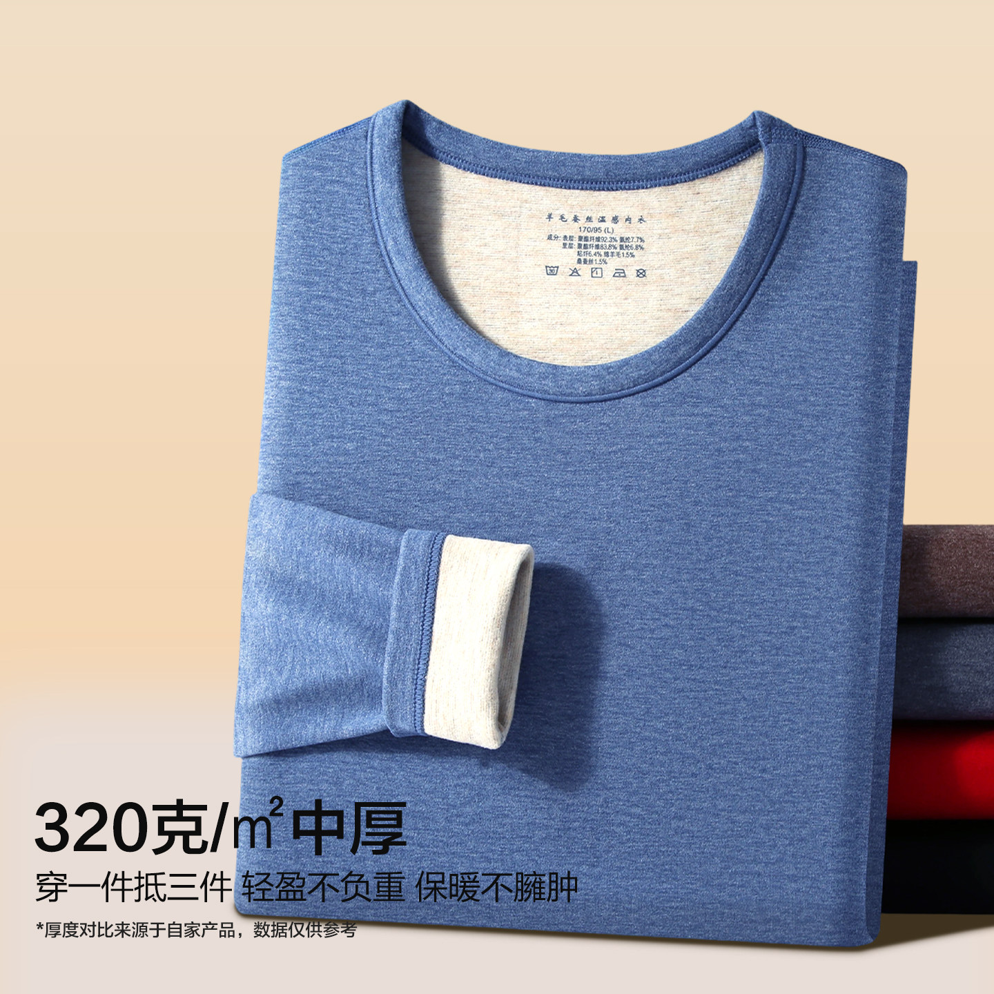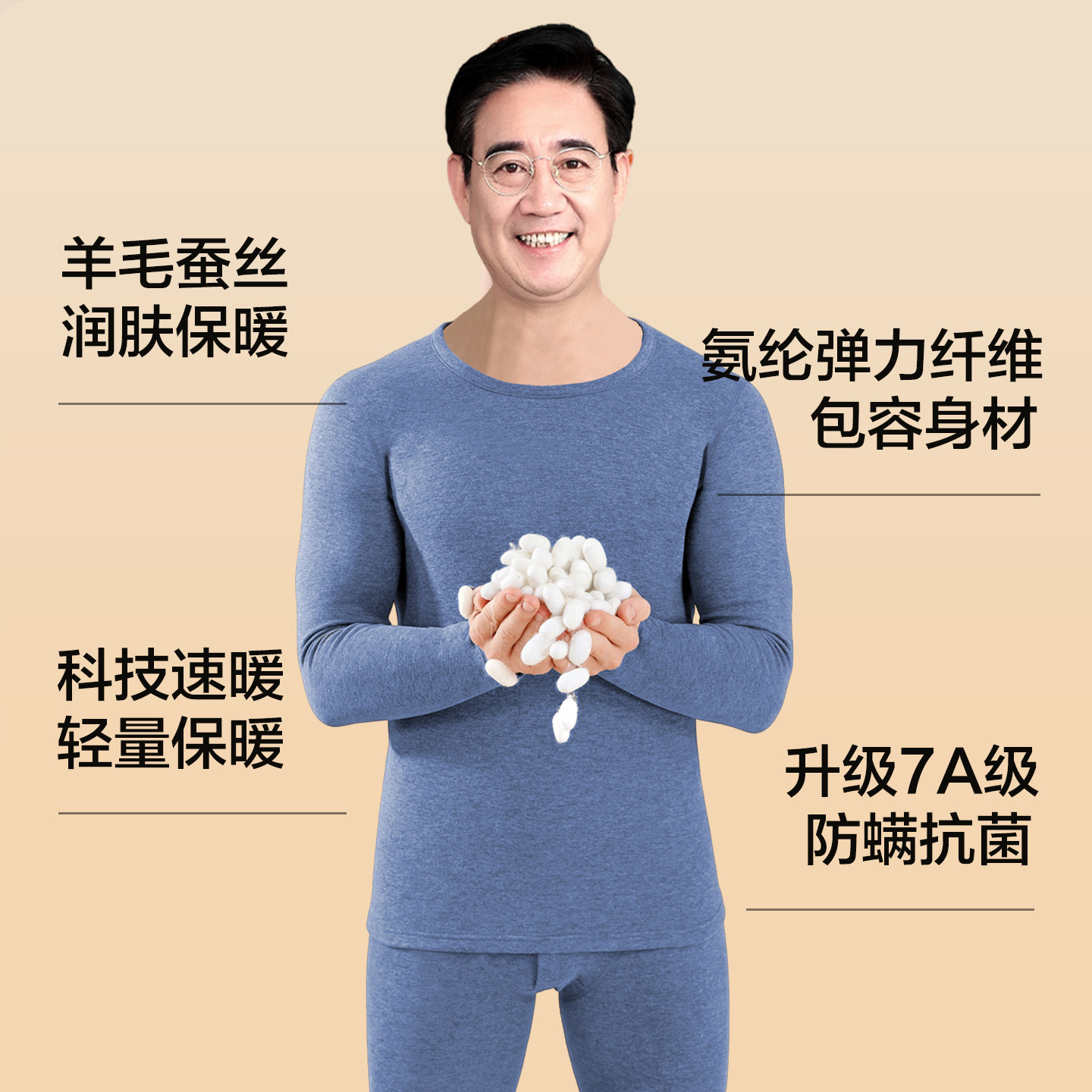天猫男士保暖内衣加绒加厚套装中老年人羊毛蚕丝爸爸打底秋衣秋裤冬季