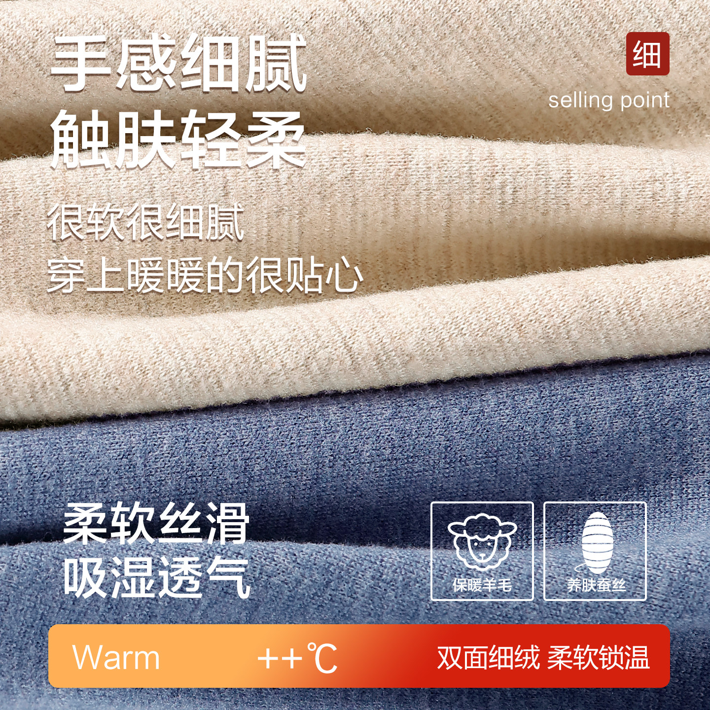 羊毛蚕丝无痕发热保暖内衣女秋冬季加绒加厚秋衣秋裤套装内穿打底