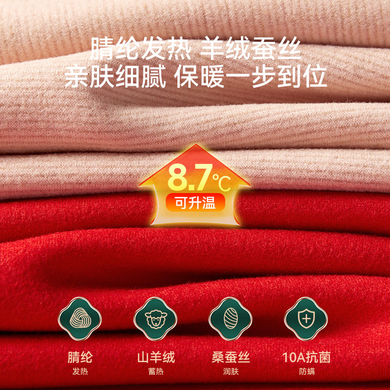 六只兔子抑菌保暖内衣女羊毛蚕丝肌底衣秋冬打底秋衣秋裤修身套装