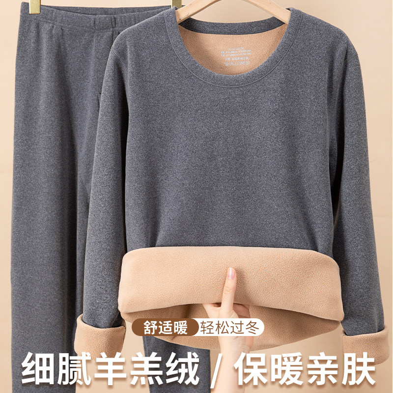 淘宝爸爸保暖内衣加绒加厚套装男款50到60岁德绒发热秋衣秋裤冬季款