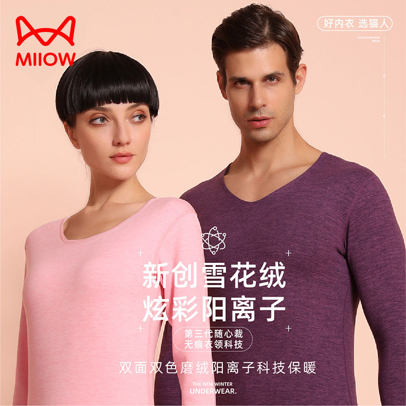 天猫猫人保暖内衣套装女男士冬季无痕双面磨毛亲肤秋衣秋裤情侣套装