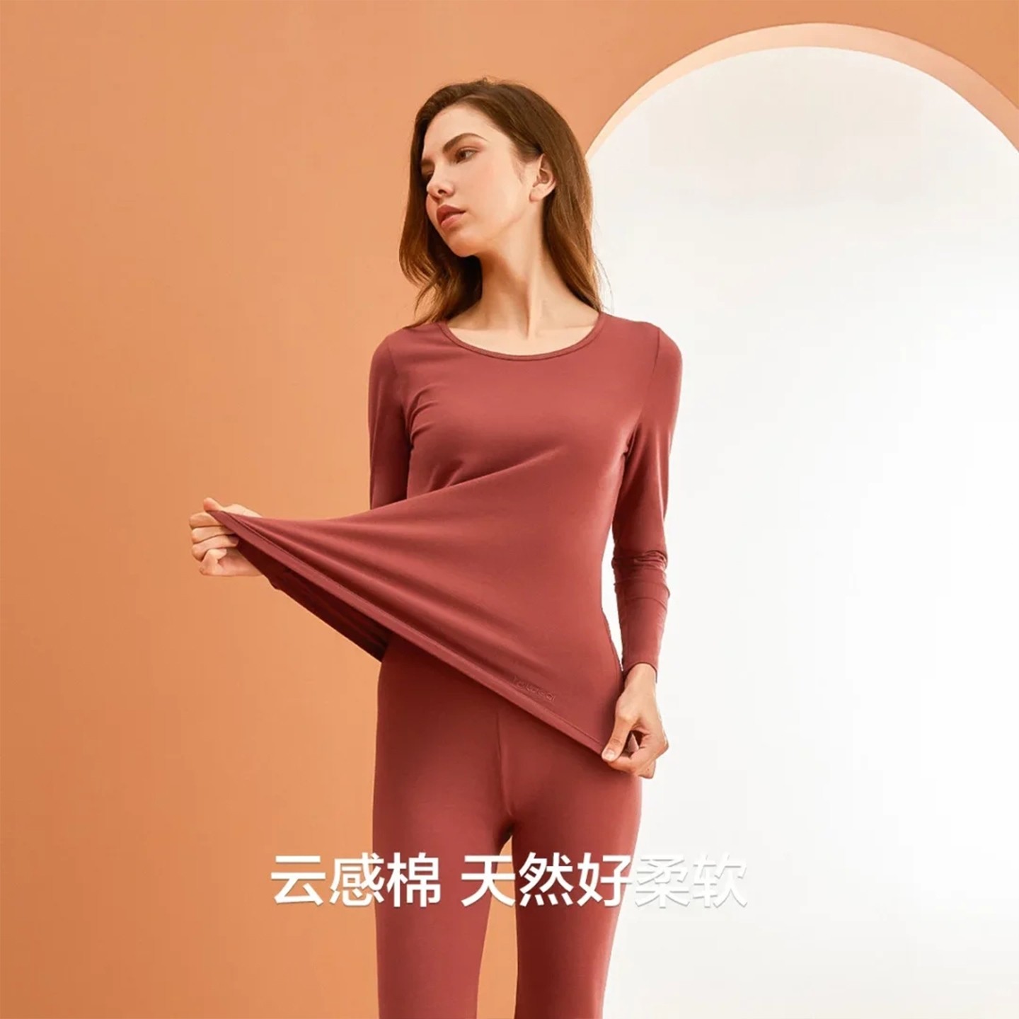 羊毛蚕丝无痕发热保暖内衣女秋冬季加绒加厚秋衣秋裤套装内穿打底