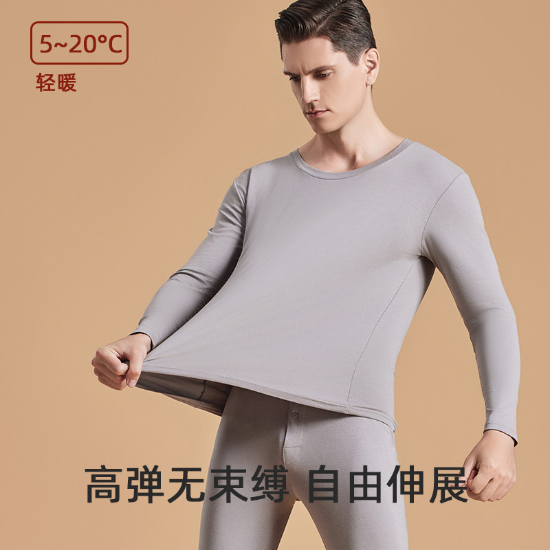 天猫恒源祥莫代尔男士秋衣秋裤套装内搭打底衫薄款秋冬季发热保暖内衣