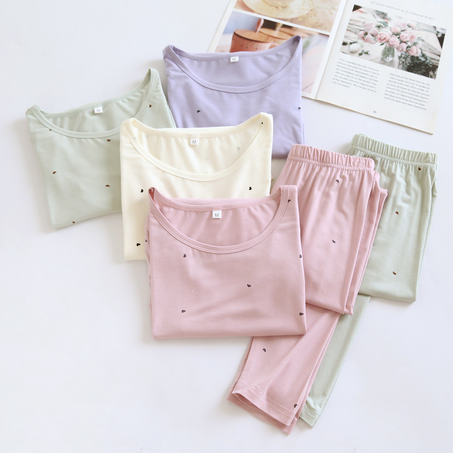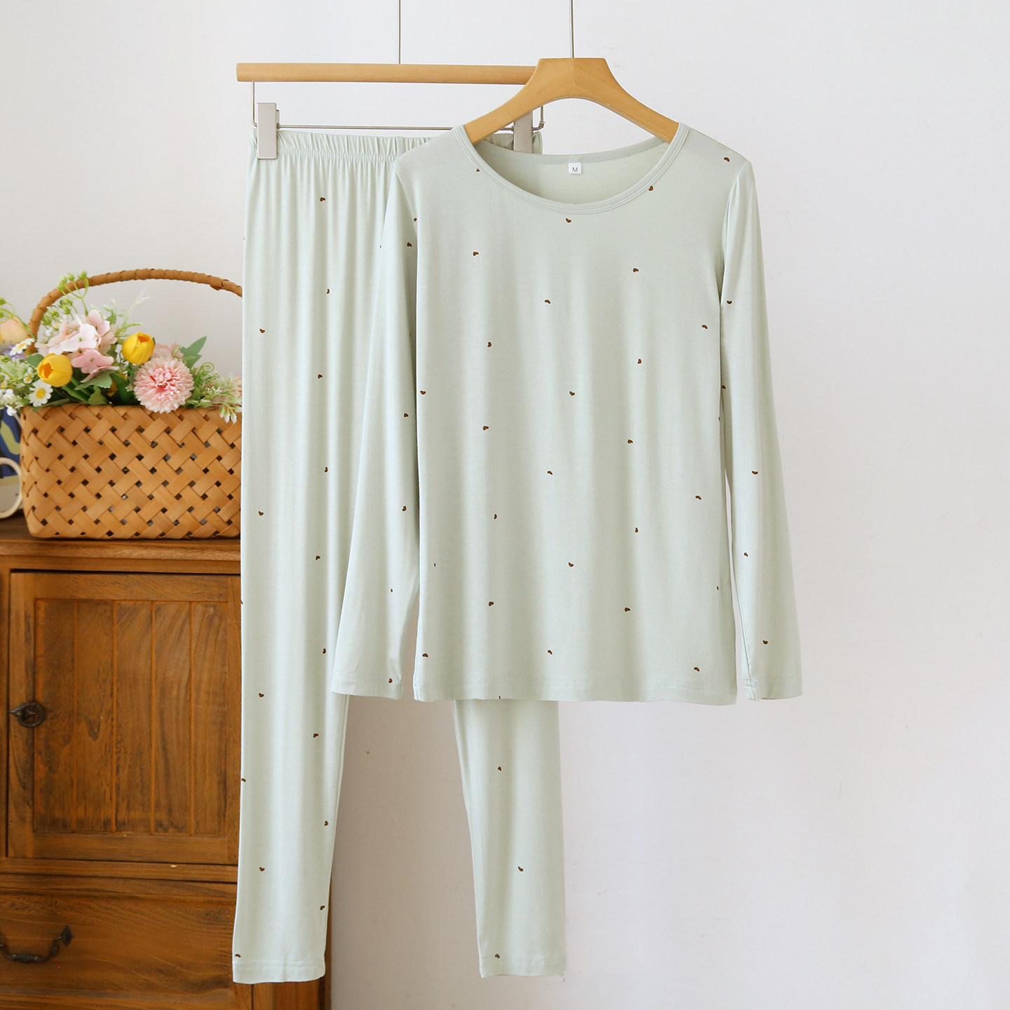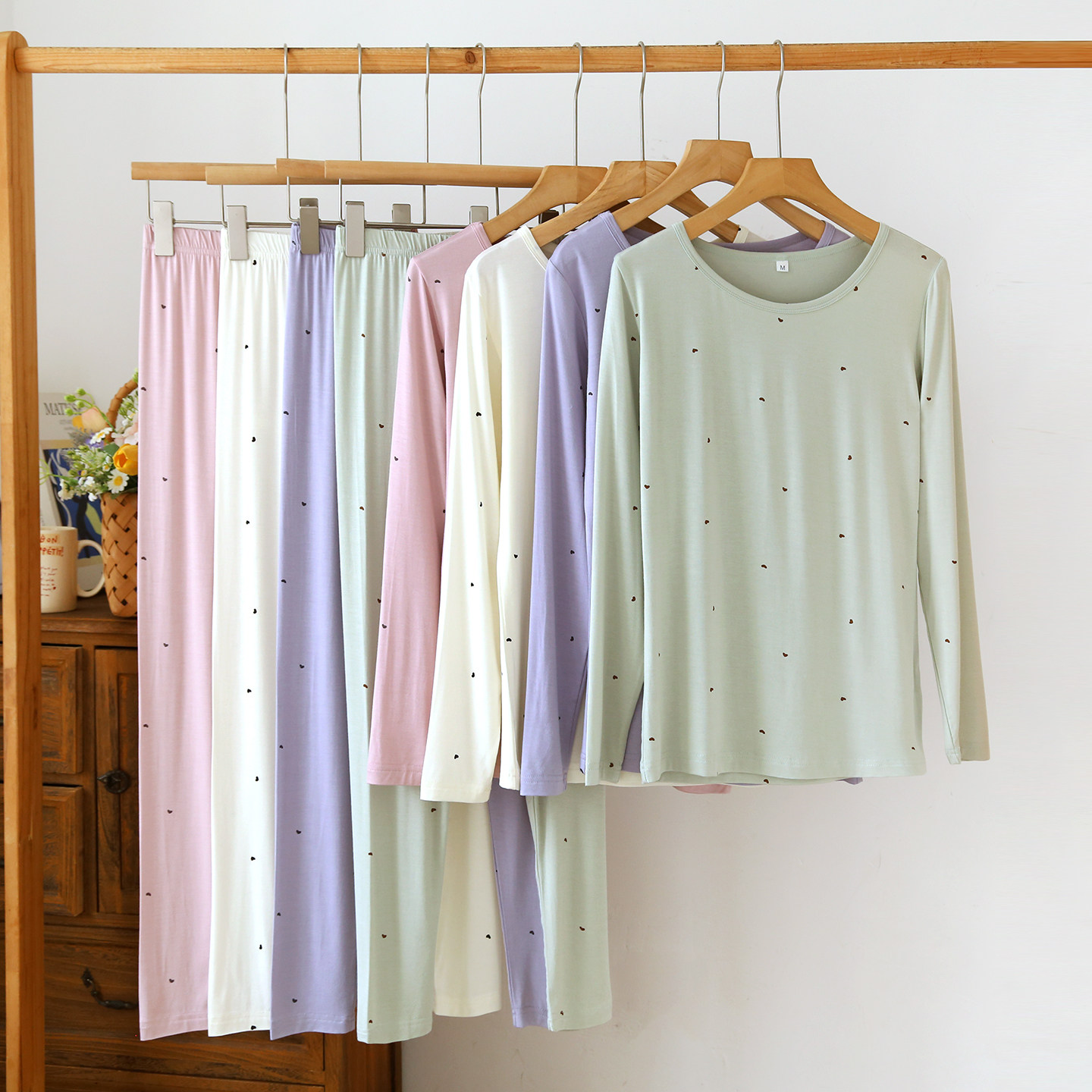 淘宝女士莫代尔秋衣秋裤打底秋冬季薄款保暖内衣套装圆领长袖睡衣弹力