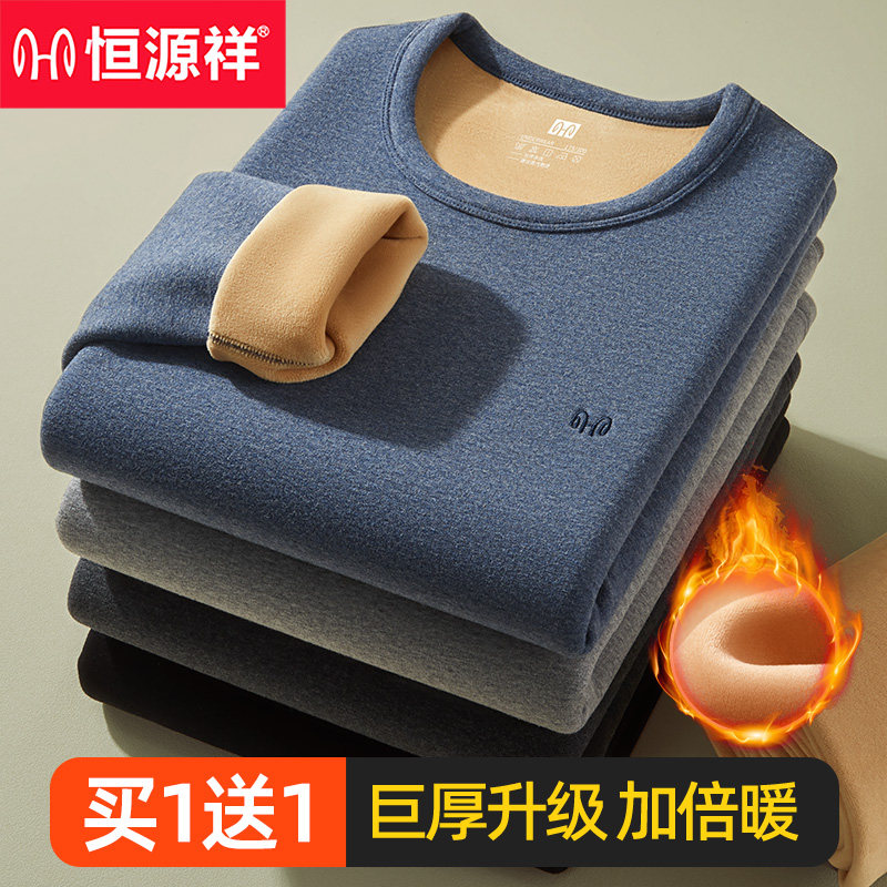 天猫恒源祥男士秋衣秋裤保温新款保暖内衣男款套装全棉纯棉冬白色舒适