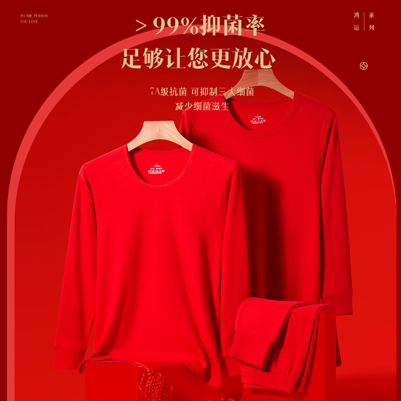 天猫雅鹿爸爸妈妈本命年保暖内衣套装纯棉大红色秋衣秋裤2026属马冬季