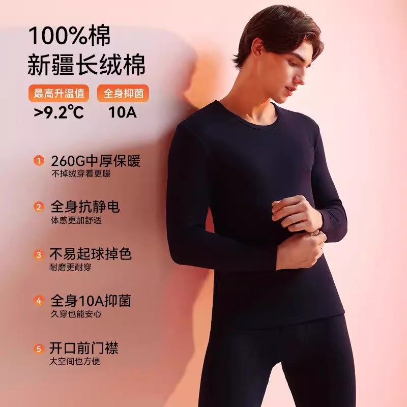 天保暖内衣男士套装纯棉毛衫打底衫秋衣秋裤全棉线衣线裤男冬季新款
