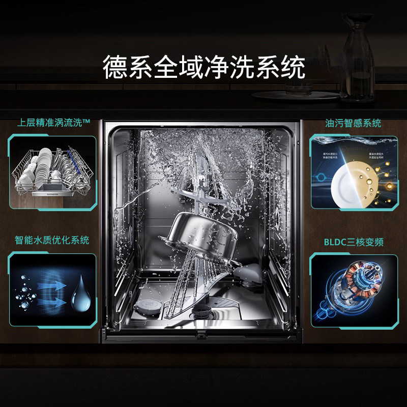 【全能舱Pro】西门子15套嵌入式洗碗机,德国原装进口,搭载先进的晶蕾烘存技术,实现高效烘干与长效抑菌。晶蕾天然矿物石高效吸湿放热,99.99%除菌率,72小时持久通风储存,餐具干爽洁净。15套大容量设计,轻松应对中式家庭聚餐需求,灵活碗篮适配多样餐具。支持智能感应、多种洗涤程序,节能省水。嵌入式设计完美融入现代厨房,彰显德系精工品质。官方正品保障,家用首选,让洗碗成为省心享受,提升生活品质。