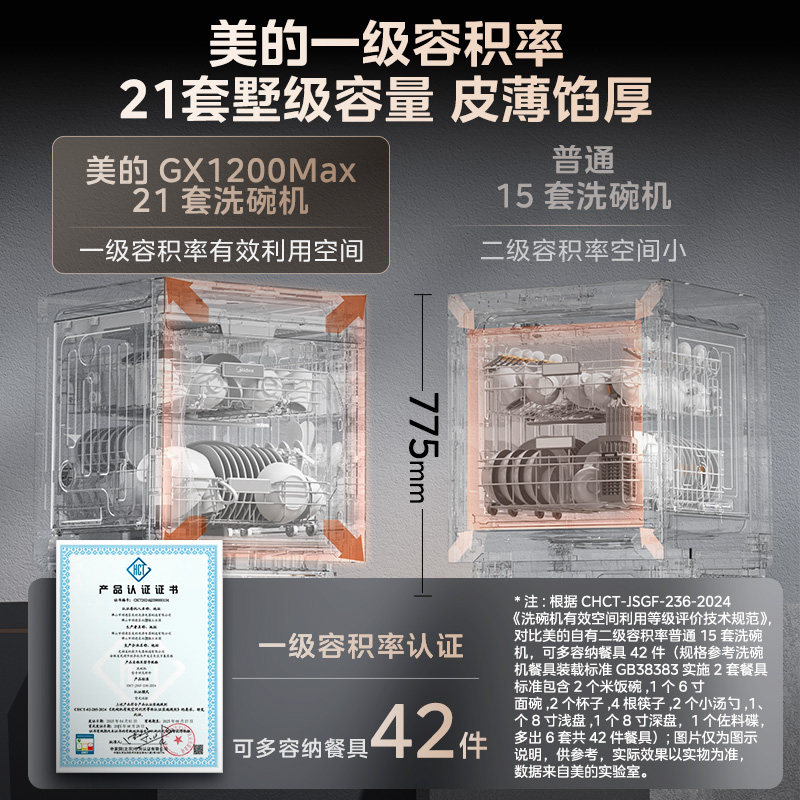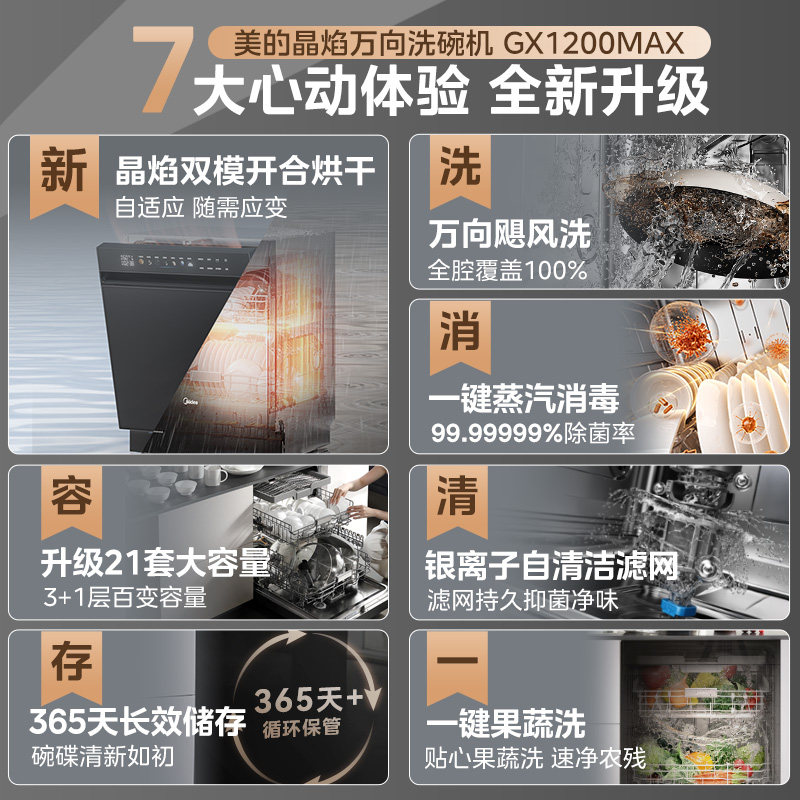 天猫美的洗碗机GX1200Max全自动家用21套大容量嵌入式烘干消毒一体柜