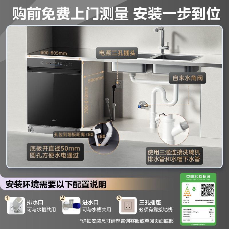 美的万向变频洗碗机家用全自动烘干消毒一体嵌入式18套X6SMax官方