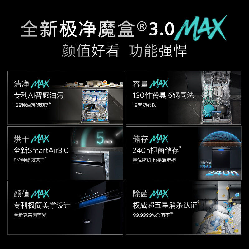 天[新品]西门子极净魔盒Plus16套嵌入式洗碗机官方家用消毒除菌HB88