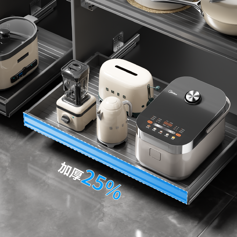 天猫意铂尼厨房橱柜抽屉置物架地柜电器锅拉篮抽拉式铝合金收纳拉篮