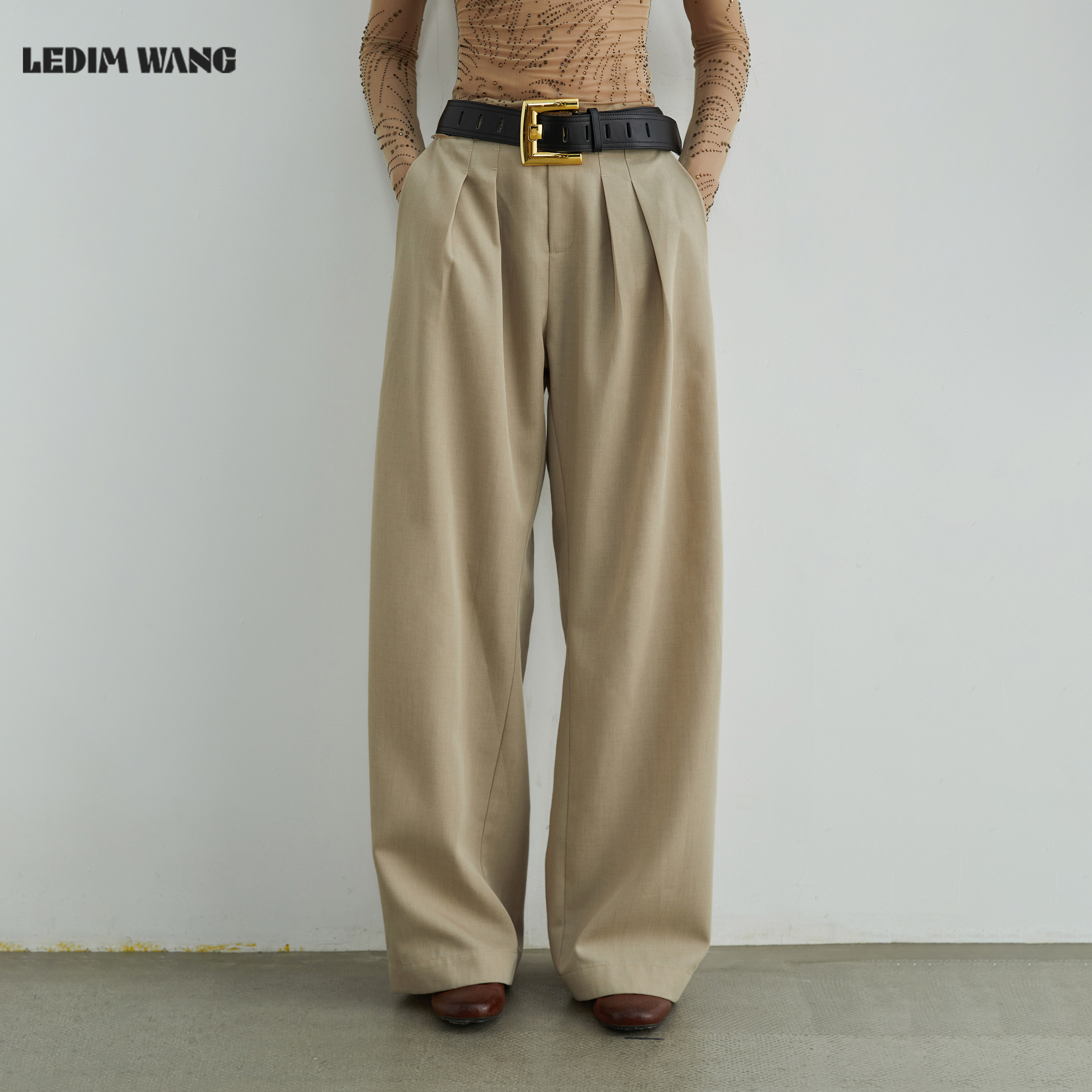 天猫LEDIM WANG黑标/解构廓形休闲卡其西裤女秋冬高级感长裤2025新款