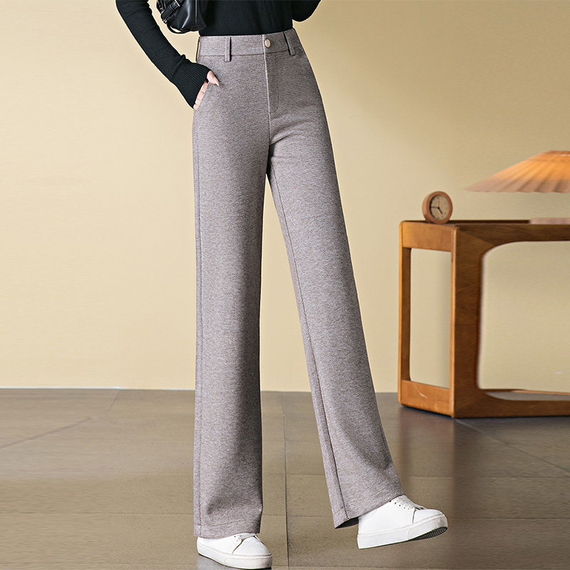 天猫毛呢西裤女士2025秋冬季新款垂感灰色人字纹阔腿裤加厚直筒裤子