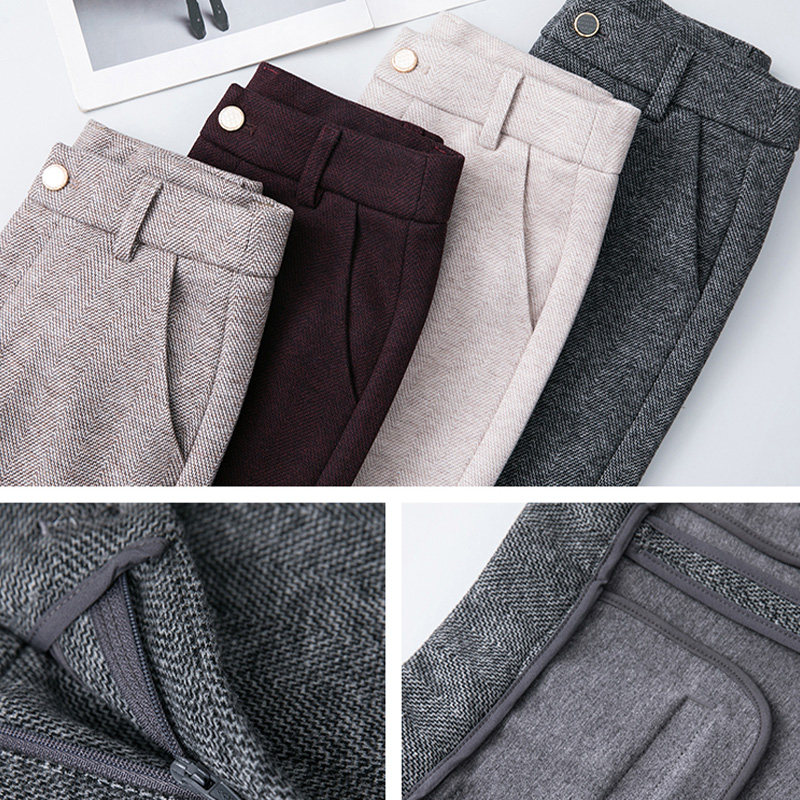 啄木鸟微喇裤女秋冬季高腰显瘦休闲小西裤修身百搭加绒气质喇叭裤