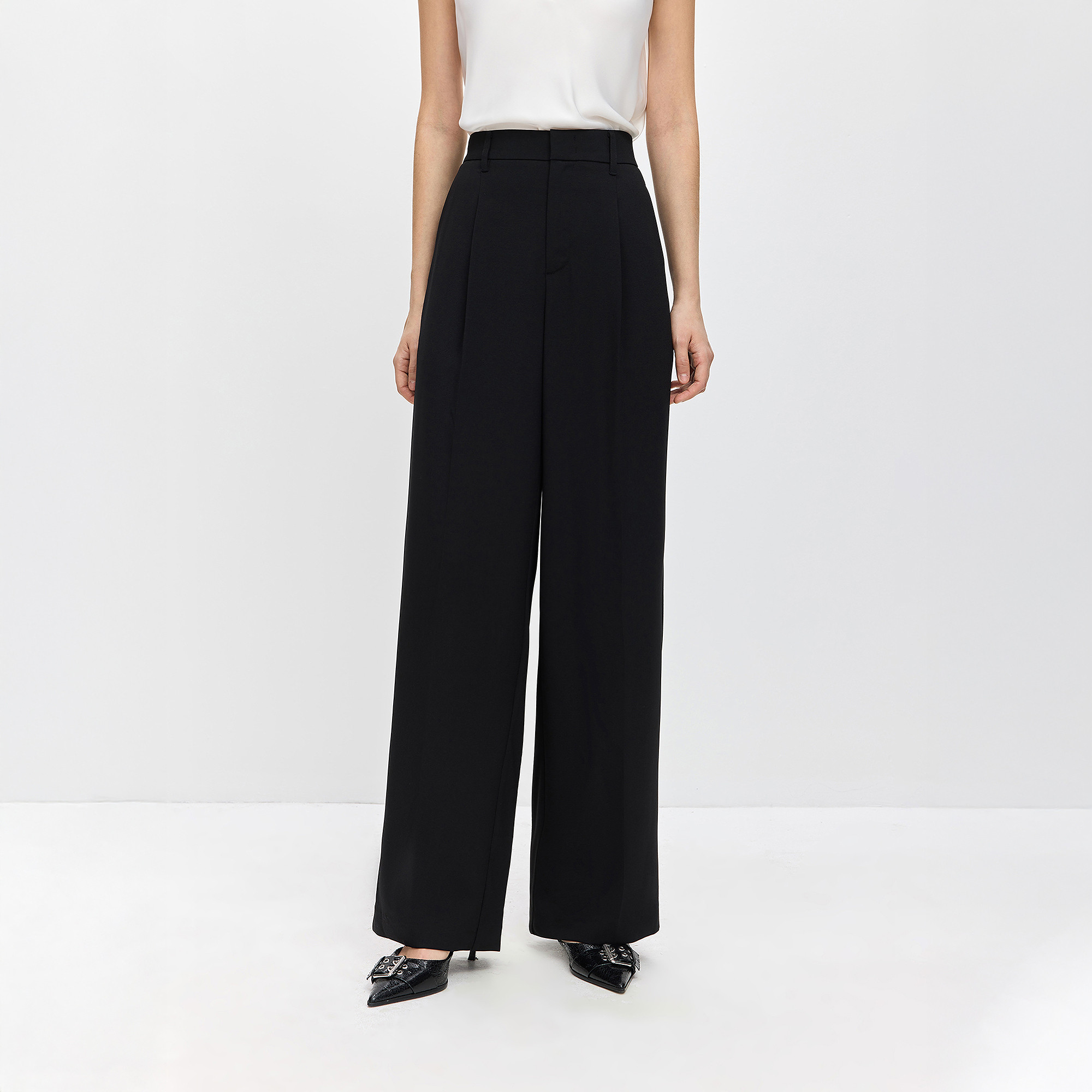 天ONLY2025冬季新款通勤风垂顺西裤面料设计喇叭裤长裤休闲裤女