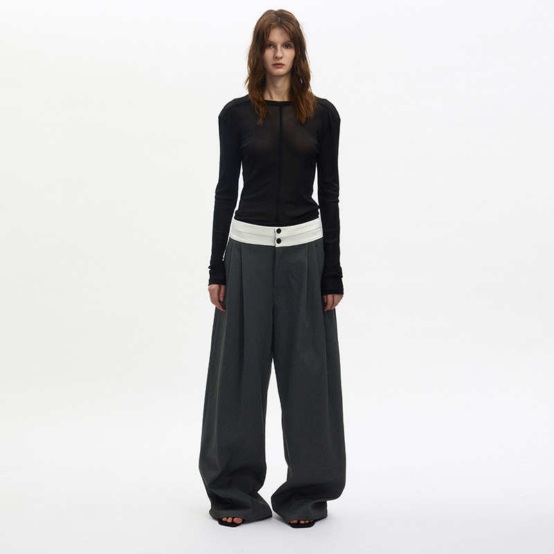 淘宝SouthStudio西裤男女同款阔腿宽松25秋冬白色腰头垂感休闲西裤