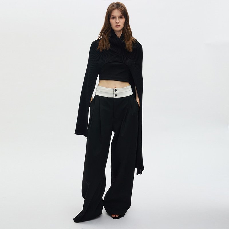 天Fabrique都市巴恩风羊毛休闲西裤2025年秋季新品设计感直筒裤子女