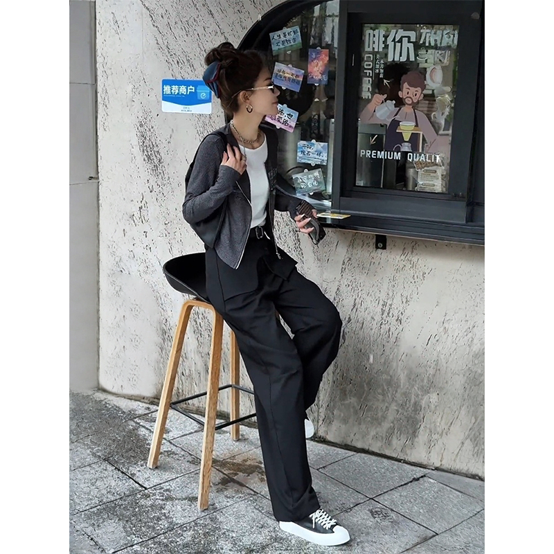 【加厚西装裤】女装冬2025新黑色高个子直筒窄版阔腿休闲西裤子女