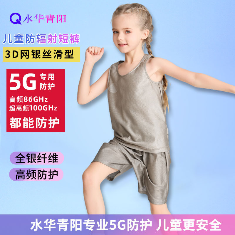 天猫水华青阳5G儿童防辐射服银纤维短裤男孩女孩内衣学生基站电磁屏蔽
