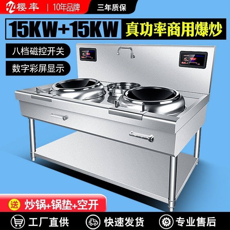 淘大功率电炒灶15kw双头商用电磁炉凹面爆炒电炉厨房设备12kw双炒炉
