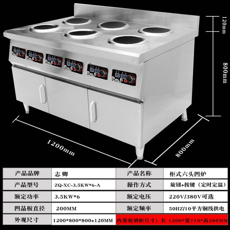 淘宝多头凹炉大功率电磁炉凹面地锅鸡多眼六头柜式3500W四头立式台式