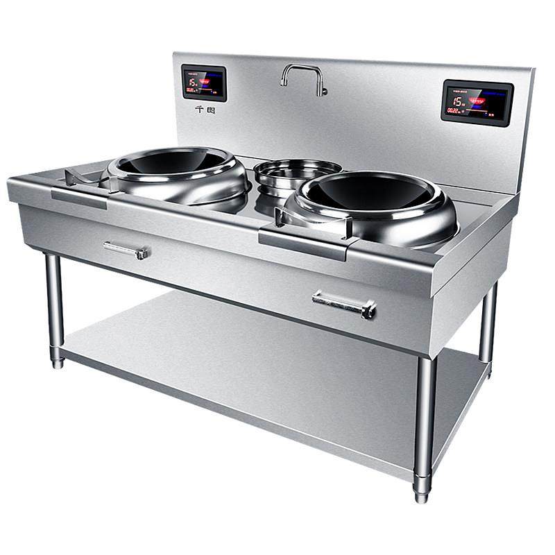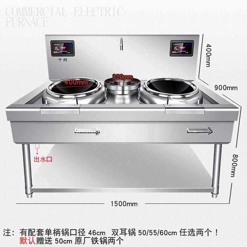 淘宝大功率电炒灶15kw双头商用电磁炉凹面爆炒电炉厨房设备12kw双炒炉