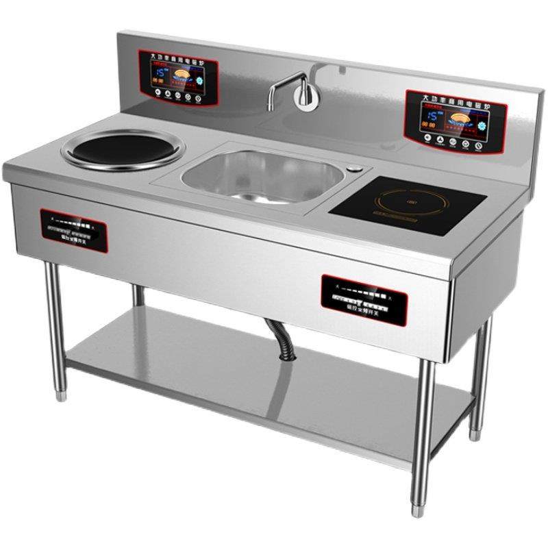 淘宝商用电磁炉大功率8000W双头一平一凹猛火电炒灶15KW饭店厨房设备