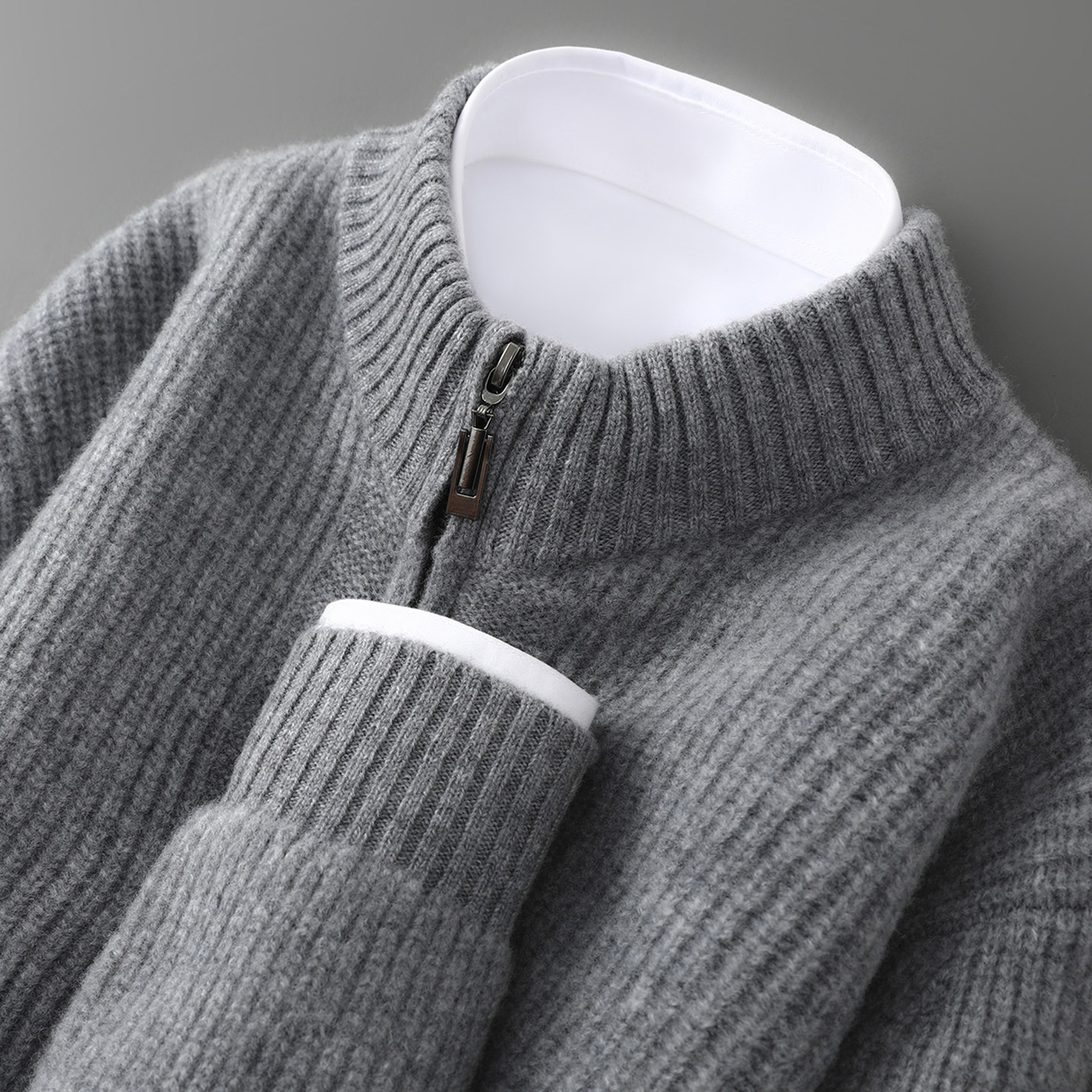 这款高端新款男士开衫精选100%纯羊毛材质,触感柔软细腻,保暖性卓越,适合秋冬季节穿着。采用经典半高领设计,贴合颈部线条,防风又显气质;加厚元宝针编织工艺,纹理立体饱满,彰显品质与匠心。前襟配备顺滑拉链,穿脱便捷,兼具实用与美观。宽松版型剪裁,包容性强,轻松打造随性慵懒的时尚造型。无论是通勤、休闲还是户外活动,都能展现优雅男士的从容格调。集保暖、舒适与时尚于一体,是追求品质生活的男士不可或缺的秋冬单品。
