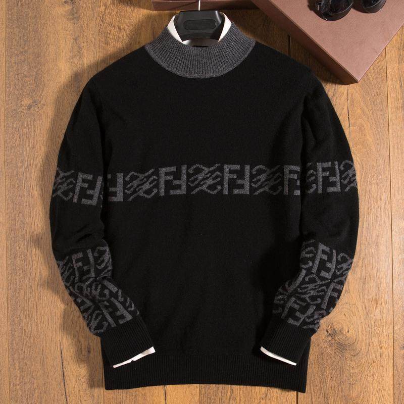 淘宝冬季青年羊绒衫男纯羊绒半高领针织衫中领嵌花套头毛衣男打底衫
