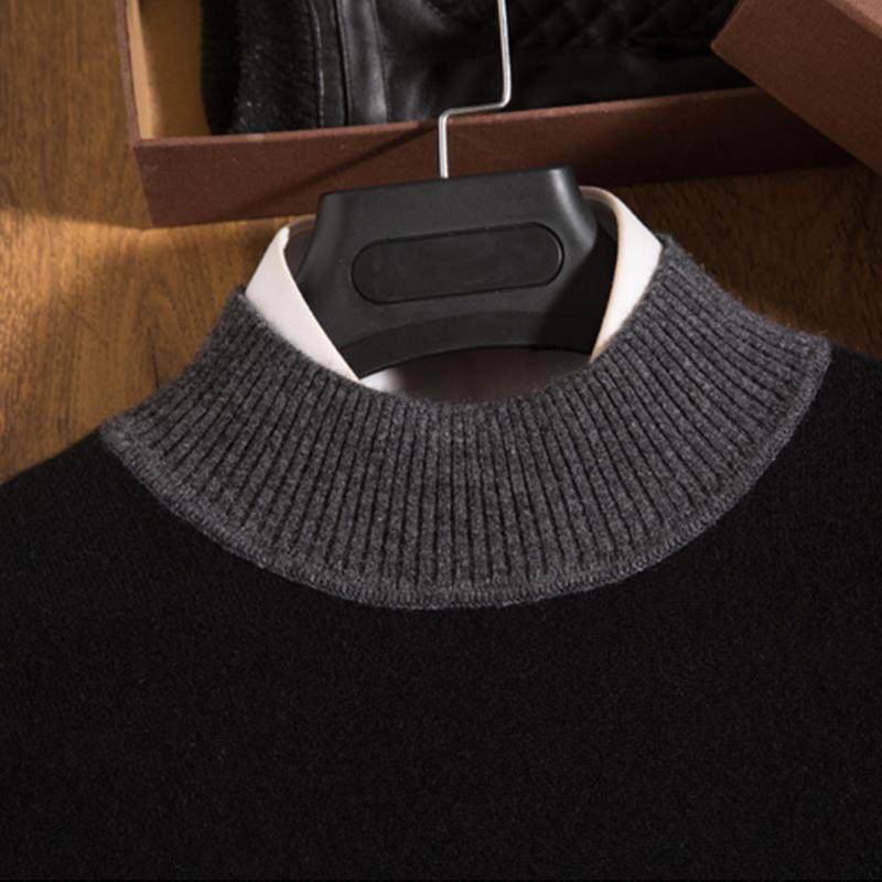 加厚100%纯羊毛衫男高翻领套头毛衣商务休闲秋冬季宽松针织打底衫