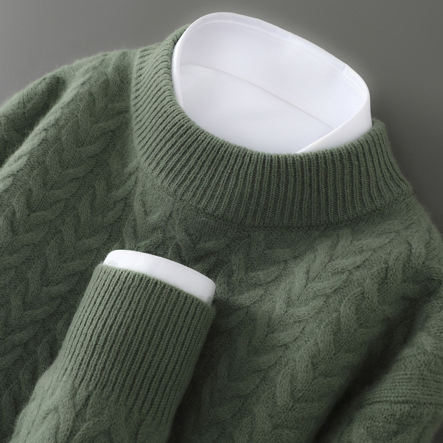 淘宝加厚100%纯羊毛衫半高领男毛衣秋冬季麻花宽松套头针织打底羊绒衫
