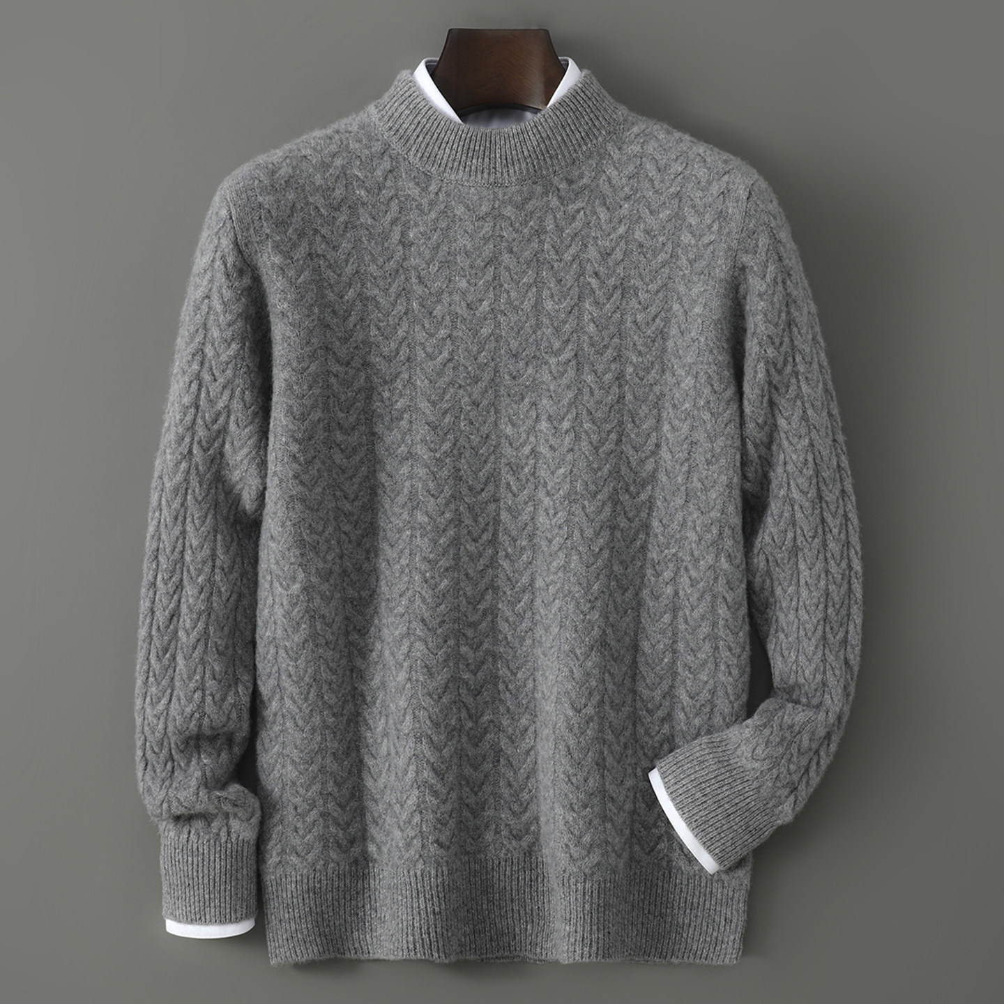 Mind Bridge【山羊绒】男士半高领毛衣2025年冬休闲绞花纹羊毛衫