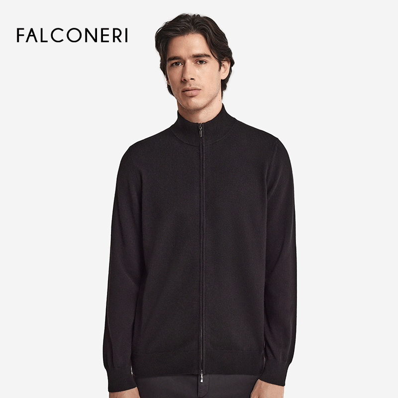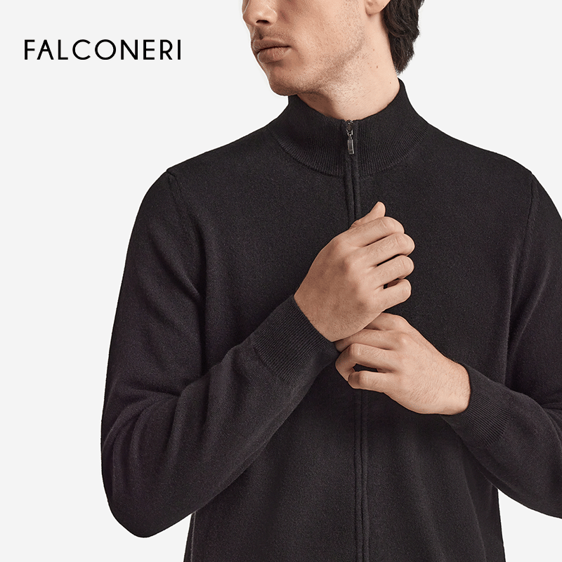 天猫FALCONERI男士经典百搭休闲罗纹领口长袖拉链山羊绒针织衫UML228P