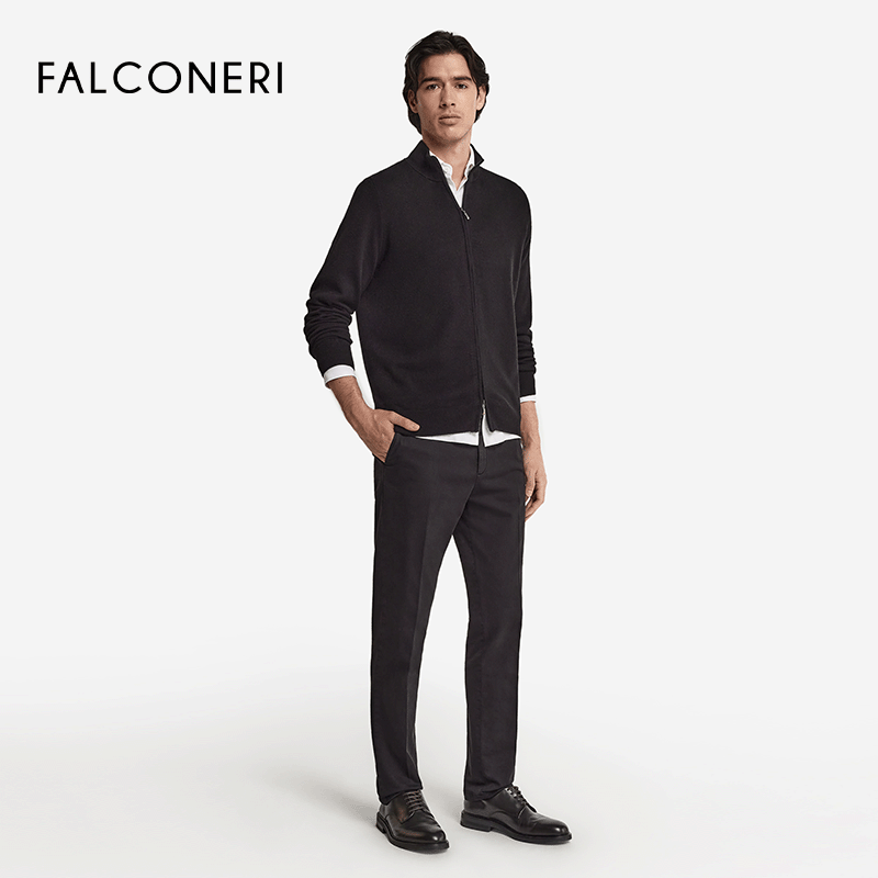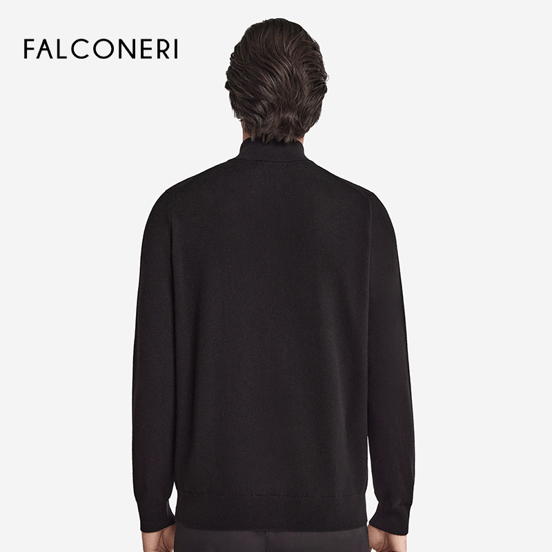 FALCONERI男士经典百搭休闲罗纹领口长袖拉链山羊绒针织衫(款号:UML228P)精选优质山羊绒面料,触感柔软细腻,保暖性出众,穿着轻盈舒适。采用经典罗纹领口设计,搭配便捷拉链开合,既提升实用性,又增添现代休闲感。修身剪裁贴合身形,长袖设计适合春秋冬三季穿搭,轻松应对日常通勤或休闲场合。简约大气的版型与细腻针织工艺相得益彰,可搭配衬衫、T恤或外套,轻松打造儒雅型男风格。FALCONERI以匠心品质与意式美学,为现代男士提供兼具舒适与格调的理想之选。