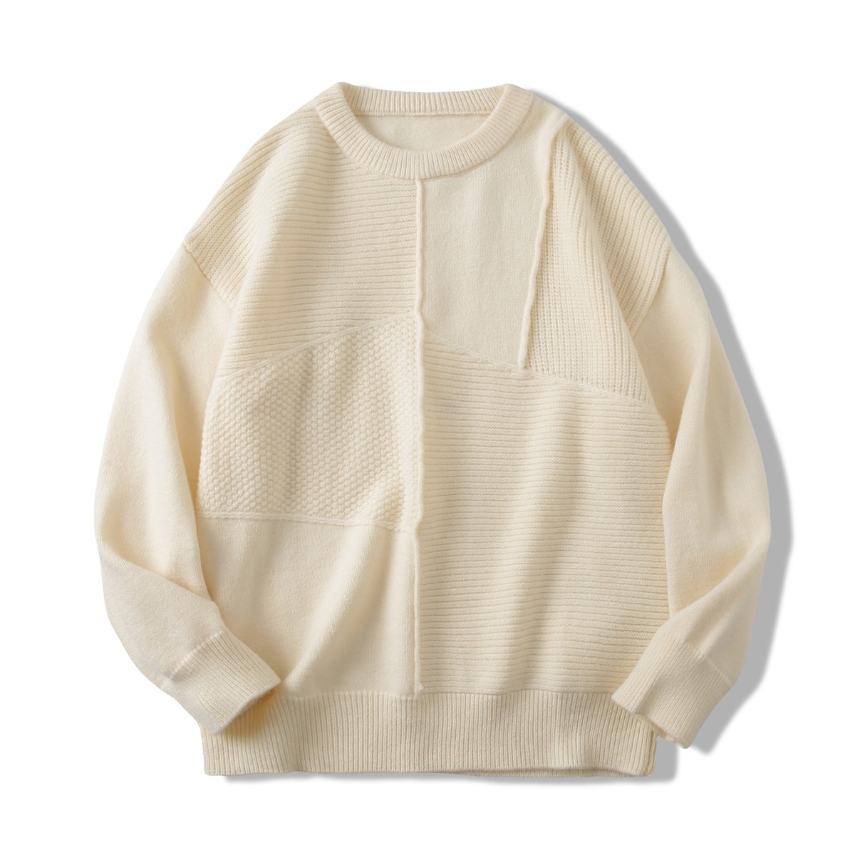 淘明星同款穿搭冬季三股加厚羊绒衫男青年圆领花色针织毛衣慵懒风潮