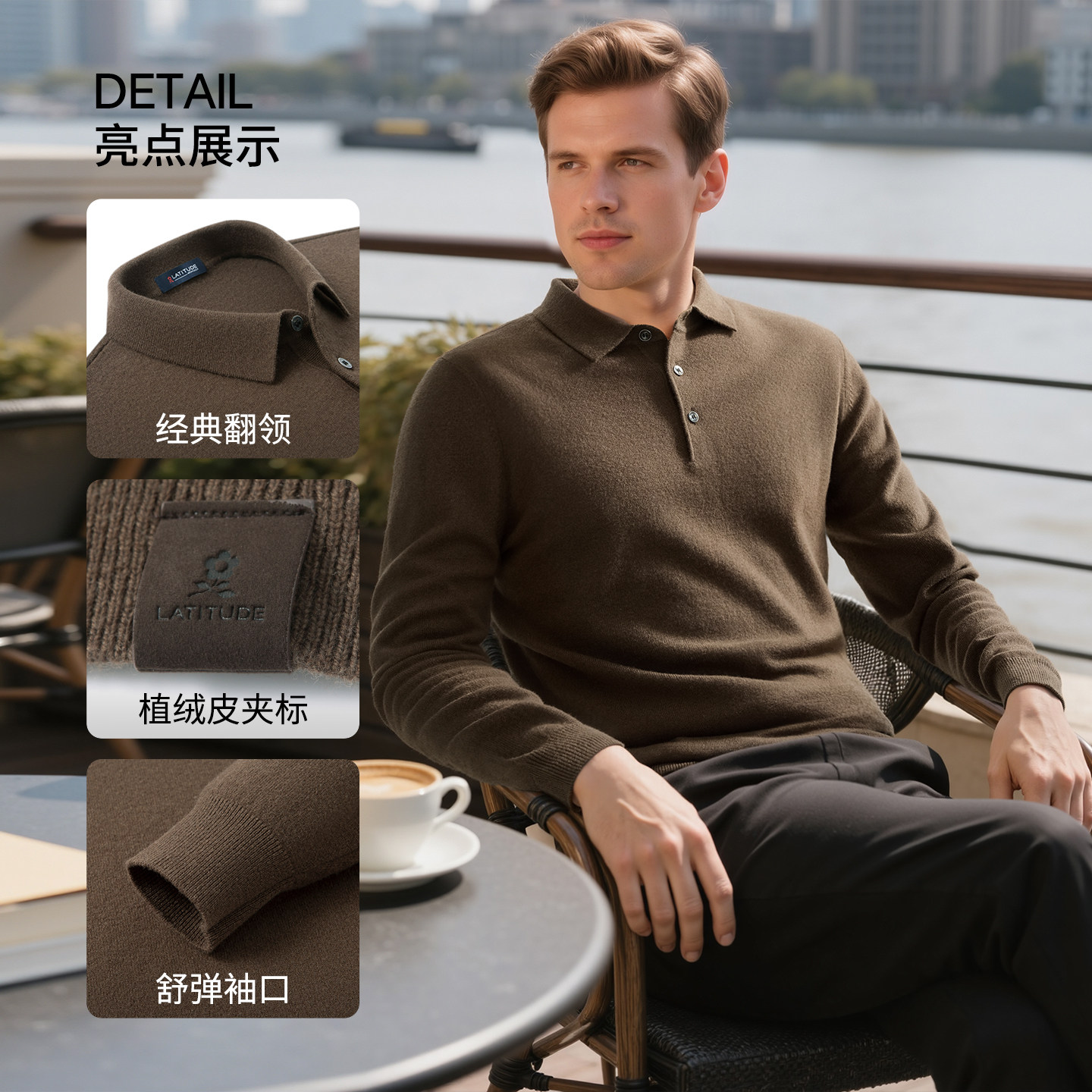 【绵羊毛+山羊绒】Eland衣恋毛衣男长袖拉链针织衫2025冬季新款